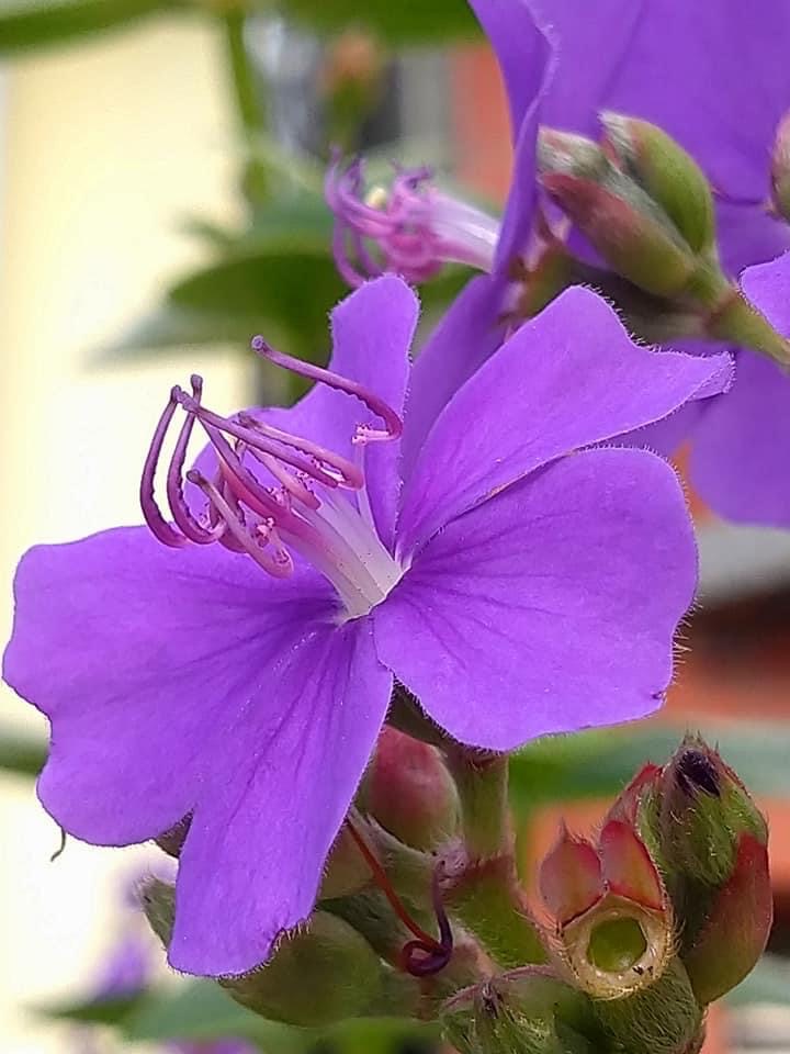 (栽培種;原產於巴西;世界植物在線 POWO 標示 Tibouchina semidecandra = Pleroma semidecandrum,皆為有效學名,附有照片(疑似誤植);真正的巴西野牡丹,台灣可能從未引進,照片如下