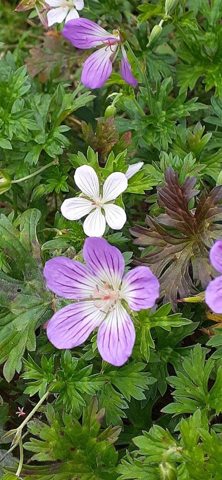 ![]() 上面照片:江亮亮拍攝 (紫花是單花牻牛兒苗,白花是山牻牛兒苗) |