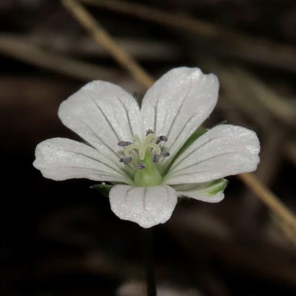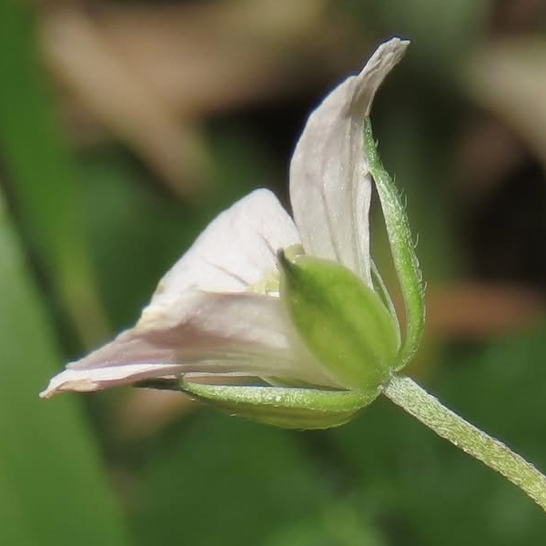 (台灣特有種;多年生蔓性草本;具走莖,節處可生根,匍匐生長;全株被柔毛;單葉互生,掌形;花朵單生,腋出,花梗細長;花瓣5枚,白色至淡粉紅色;雄蕊10枚,雌蕊柱頭5叉;蒴果5瓣,成熟瓣裂,由下向上反捲)