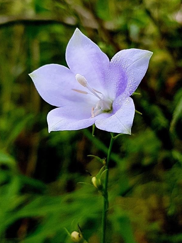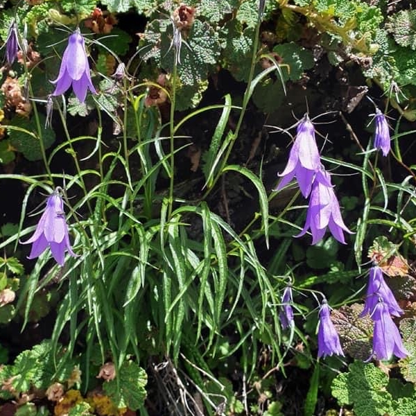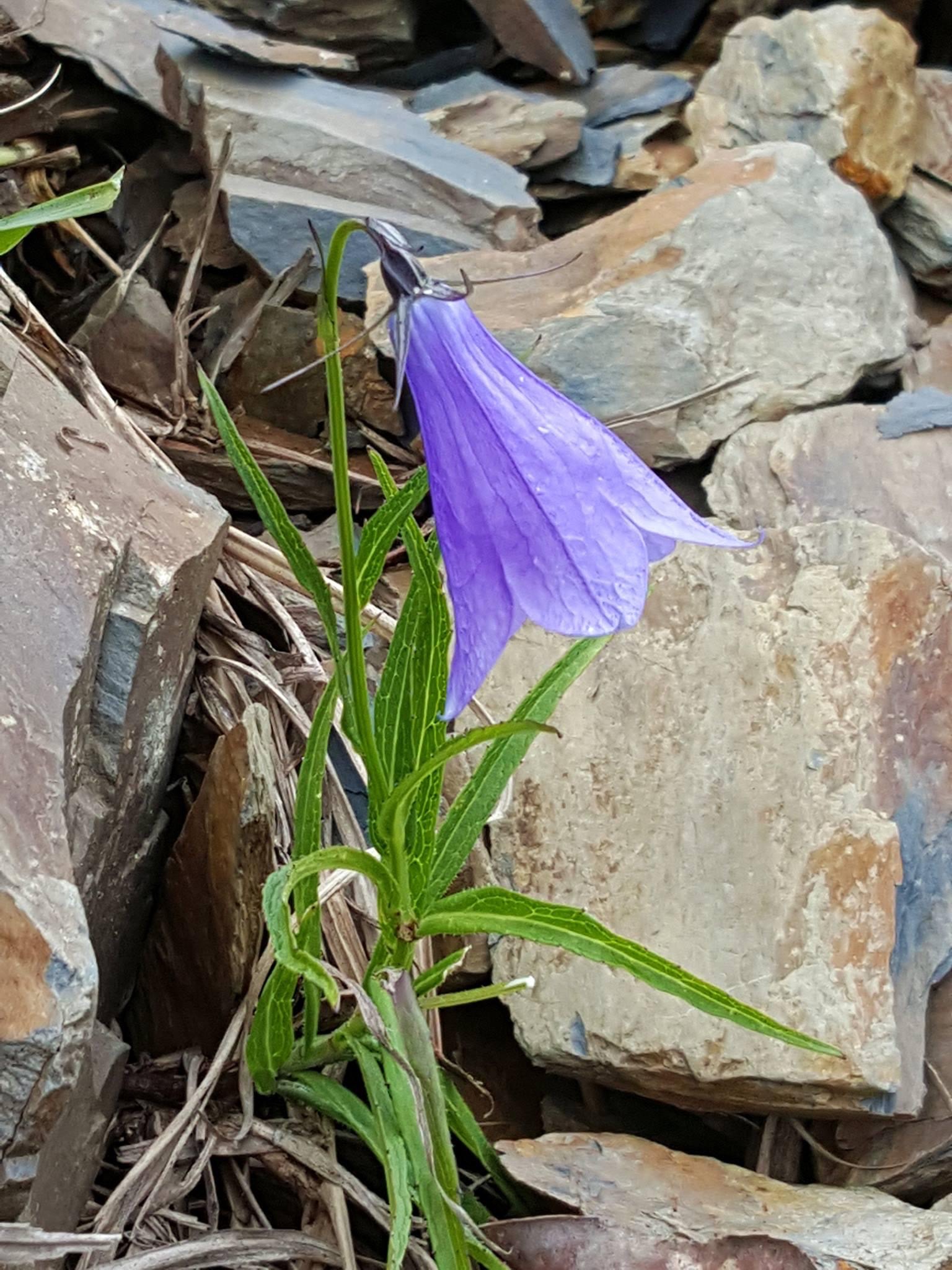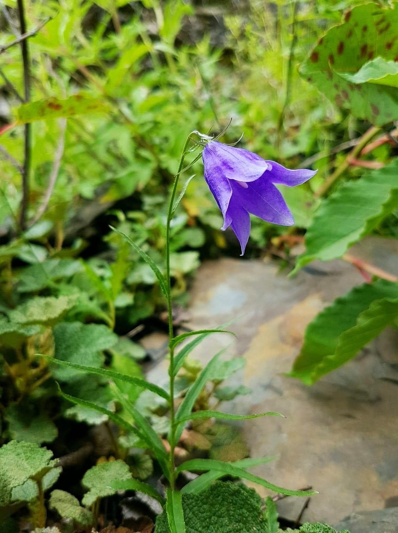 ![]() 上面照片:小花老師拍攝 (單葉互生,葉形多變,卵形、長卵形、橢圓形、披針形至線形,疏鋸齒緣,無柄;花朵單生或總狀花序,頂生;花冠紫色,風鈴狀) |