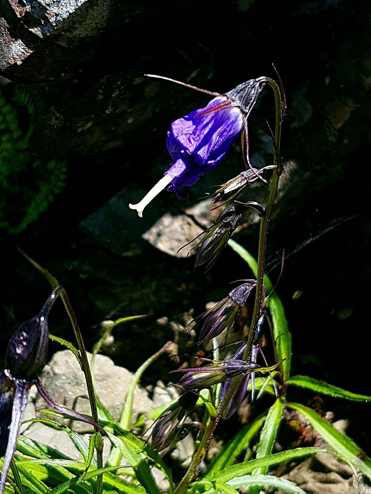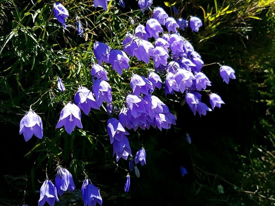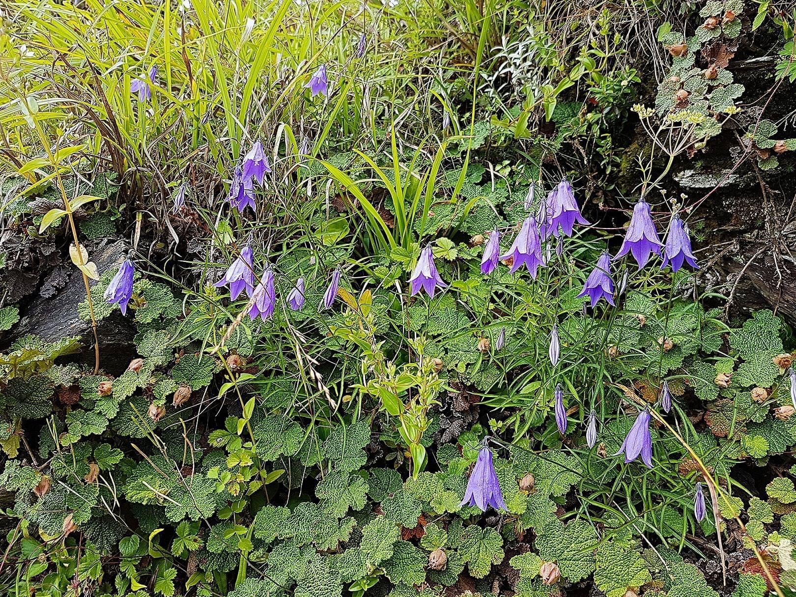 ![]() 上面照片:小花老師拍攝 (單葉互生,葉形多變,卵形、長卵形、橢圓形、披針形至線形,疏鋸齒緣,無柄;花朵單生或總狀花序,頂生;花冠紫色,風鈴狀) |