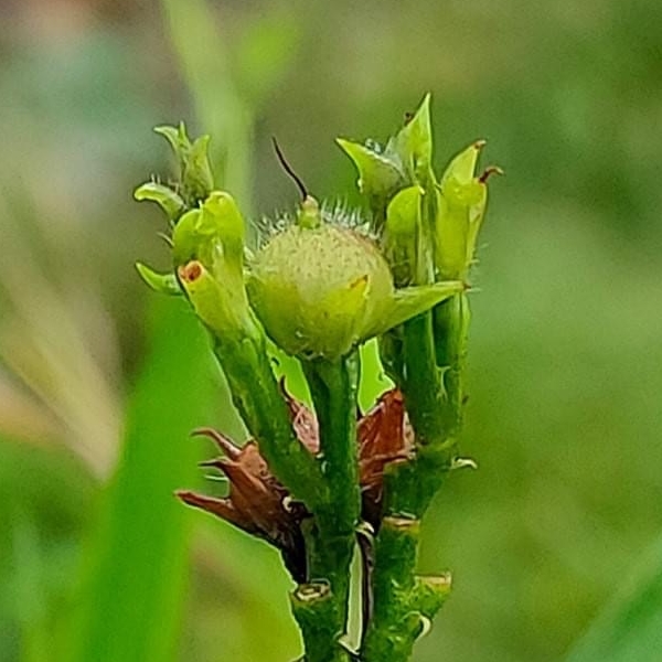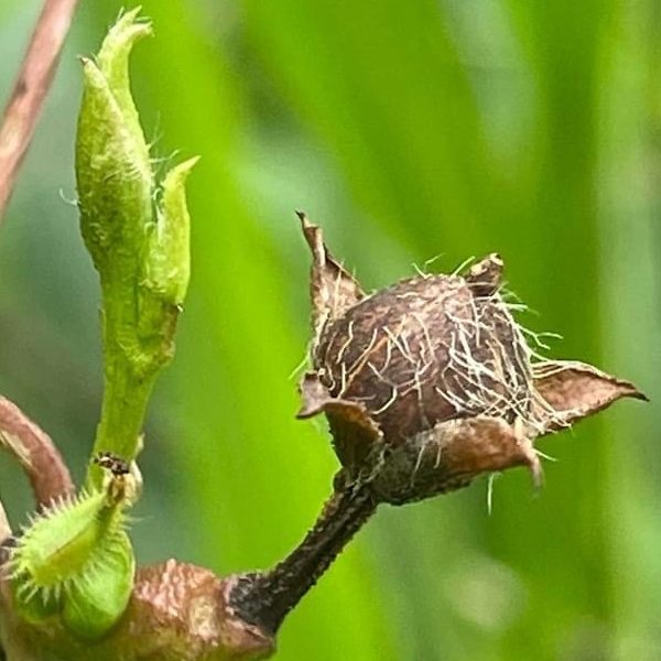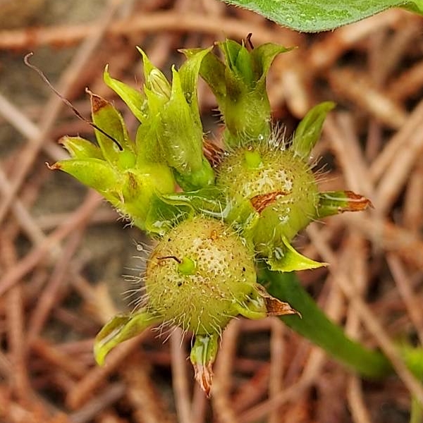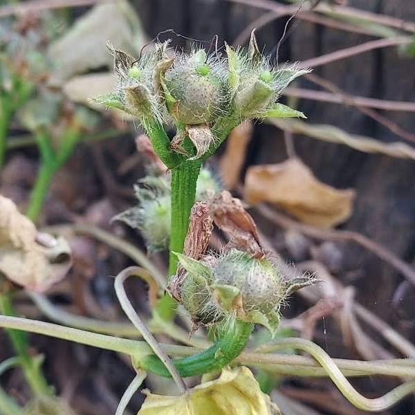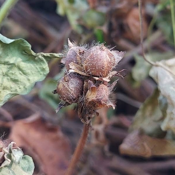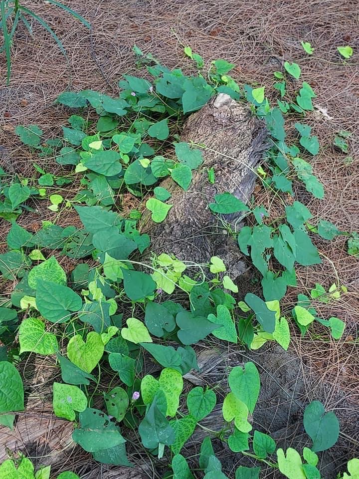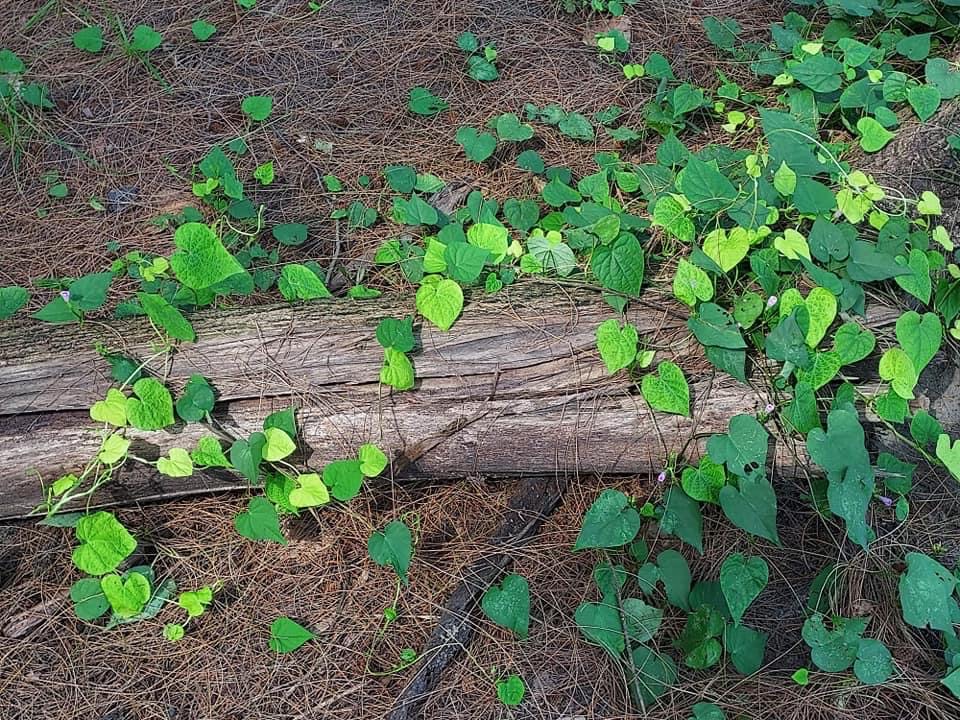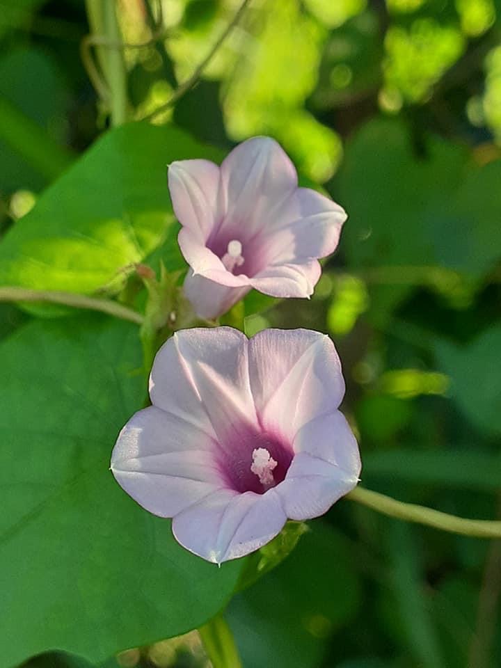 (歸化種;維基百科標名三裂葉薯,別名小花假番薯、紅花野牽牛;纏繞性草質藤本;單葉互生,心形至3淺裂;聚繖花序,腋生,1至數朵,粉紅至紫紅色,為最小型的牽牛花,萼片披針形,密被長毛;蒴果球形,密被長毛;花朵壽命3~7天,一般牽牛花為1天)