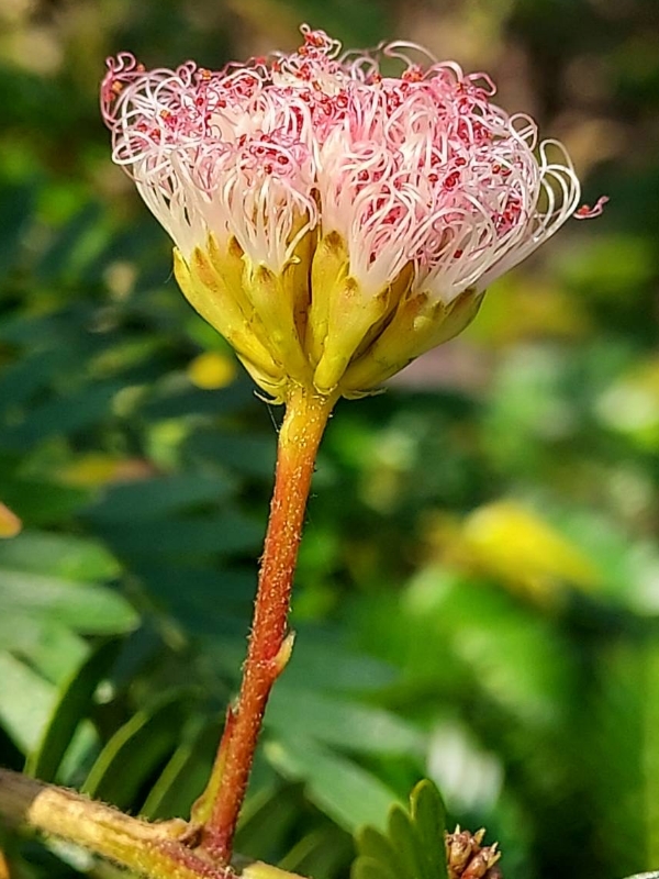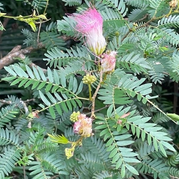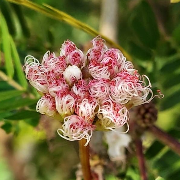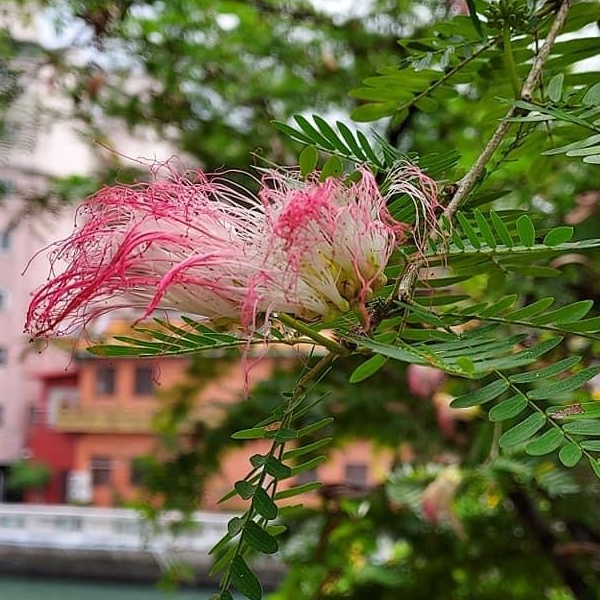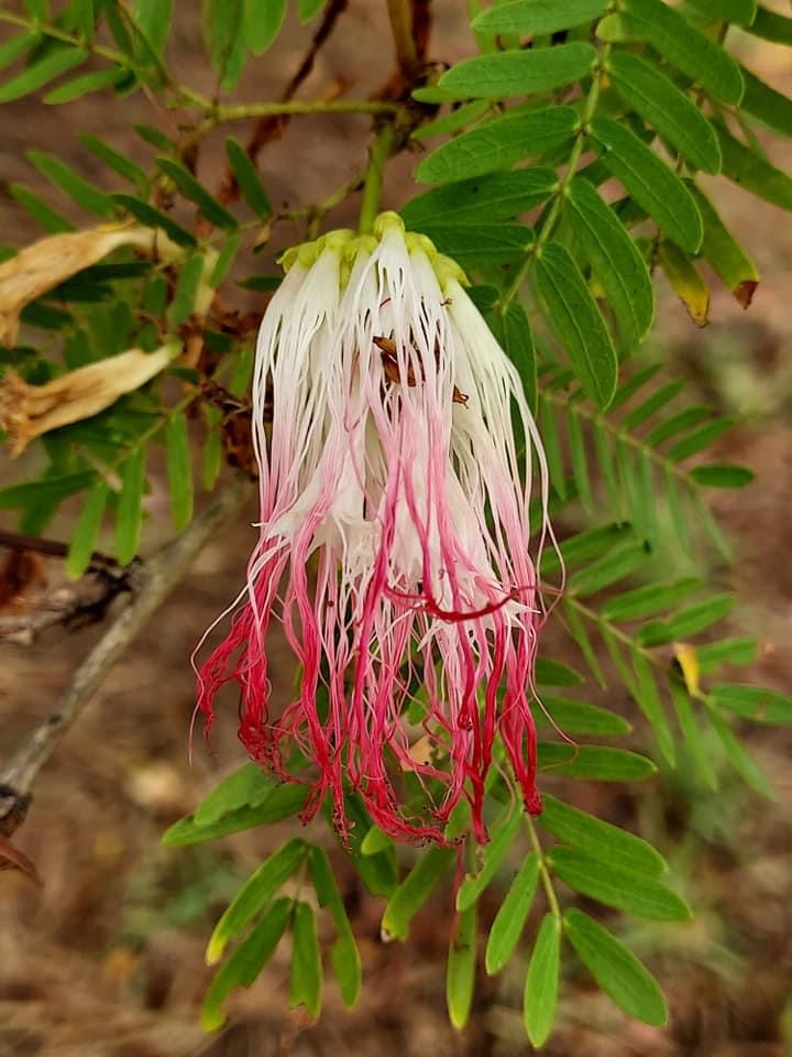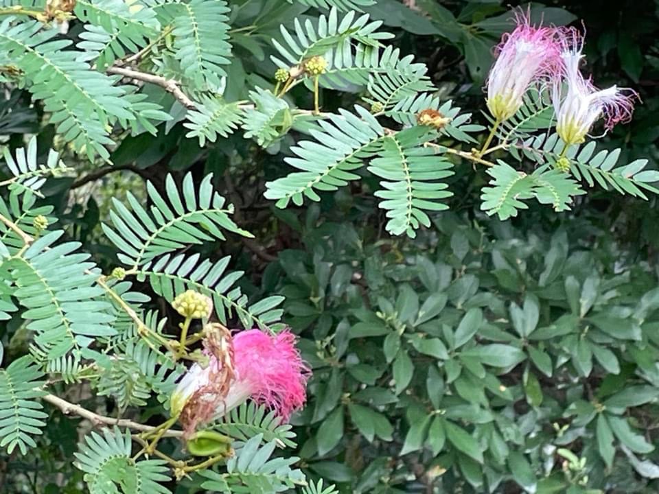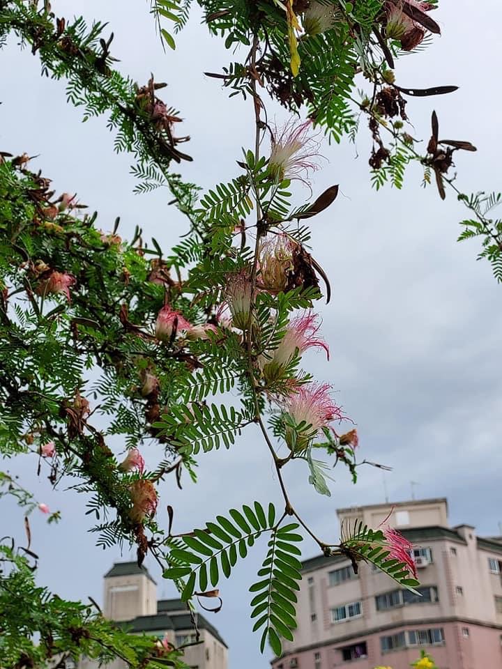 ![]() 上面照片:張儷蓁拍攝 (二回羽狀複葉,互生;小羽片1對,小羽片的小葉6~12對(或更多),歪長卵形;頭狀花序,圓球狀,腋生;雄蕊花絲多且長,基部白色,上端粉紅色) |