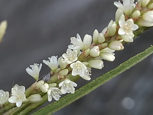 (原生種;原生於中國大陸、阿拉伯半島和新幾內亞島的三角區域;多年生草本;莖直立;單葉互生,披針形至橢圓狀披針形;托葉鞘筒狀,頂端截形,緣毛粗長;總狀花序呈穗狀,頂生或腋生,通常數個組成圓錐狀;花梗短;花被5枚,橢圓形,白色至淡綠色;雄蕊8枚,雌蕊柱頭3叉;蒴果三角狀卵形)
