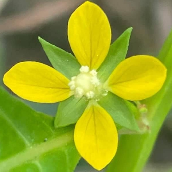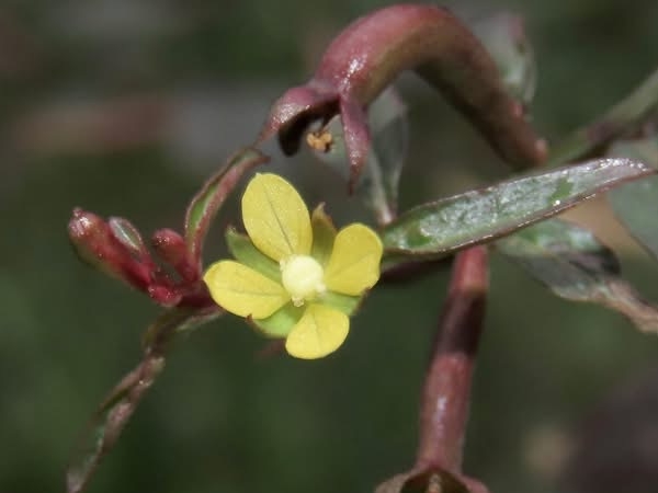 ![]() 上面照片:張儷蓁拍攝 (花朵單生葉腋,花徑甚小;花瓣4枚,黃色,橢圓形;雄蕊8枚貼著雌蕊,雌蕊柱頭球形,淡黃色;花萼4枚) |