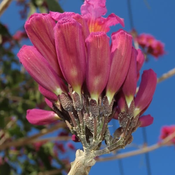 (栽培種;原生於南美洲和中美洲;世界植物在線 POWO 標示 Tabebuia impetiginosa = Handroanthus impetiginosus,皆為有效學名,附有照片;