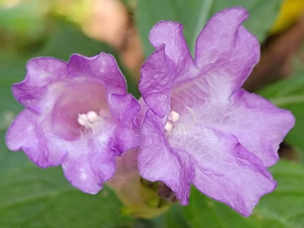 ![]() 上面照片:鄭演義拍攝 (聚繖花序,腋生或頂生;花冠筒狀,花瓣5枚,藍紫色) |