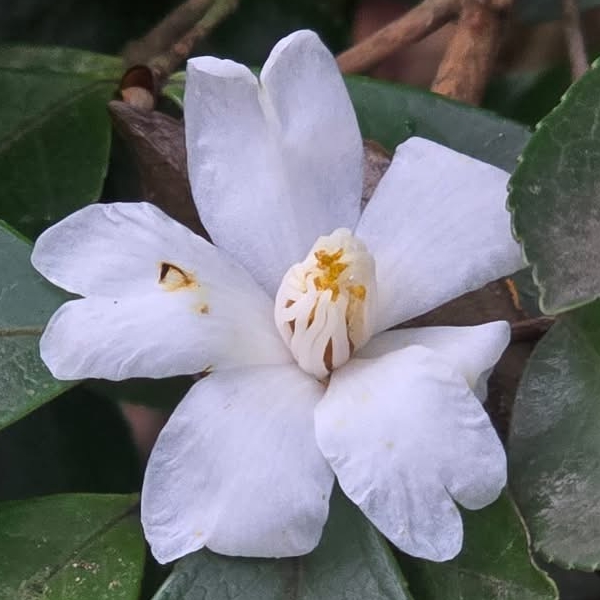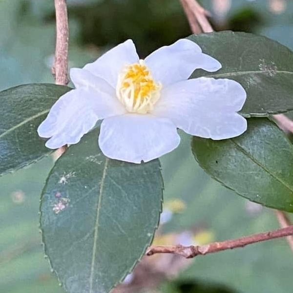 (原生種;原生於台灣和中國大陸;台灣物種名錄標名短柱山茶,別名細葉山茶;維基百科標名短柱茶,別名短柱山茶、小果油茶;灌木至小喬木;株高通常不到3公尺;單葉互生,長橢圓形至倒長卵形,革質,不明顯鋸齒緣,中脈突起,具毛;花朵單生葉腋或頂生;花瓣5~7枚,白色,先端或兩裂狀;雄蕊多數;雌蕊柱頭3叉,花柱長度不到0.3公分,故名短柱山茶;子房密被毛;花萼5枚以上;小苞片4~8枚,圓形,覆瓦狀;蒴果近球形,徑約1公分,被毛,有種子1~2粒)