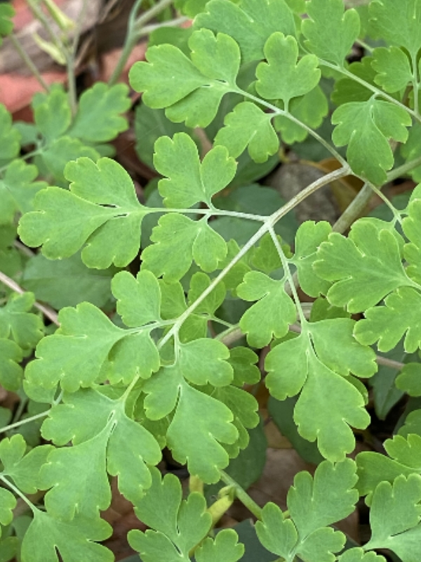 ![]() 上面照片:蟹老闆拍攝於淡水天元宮 (2~3回羽狀複葉,互生;小羽片3~5對,近對生;小葉卵形,圓齒緣至掌狀) |