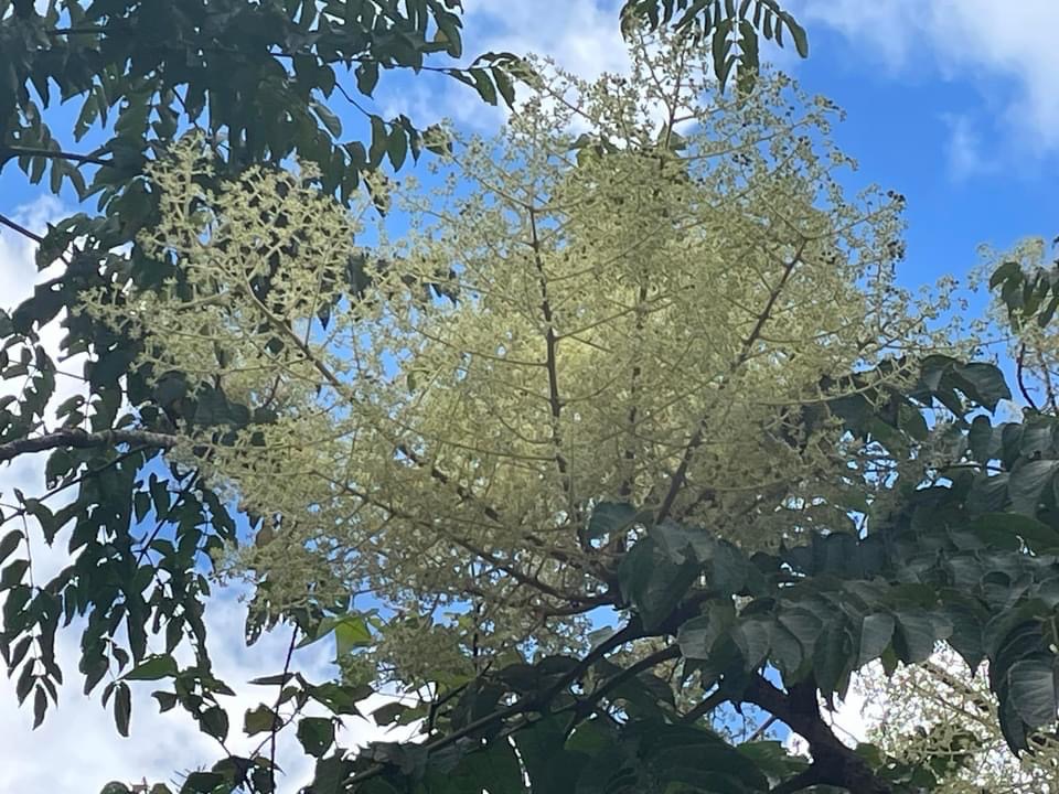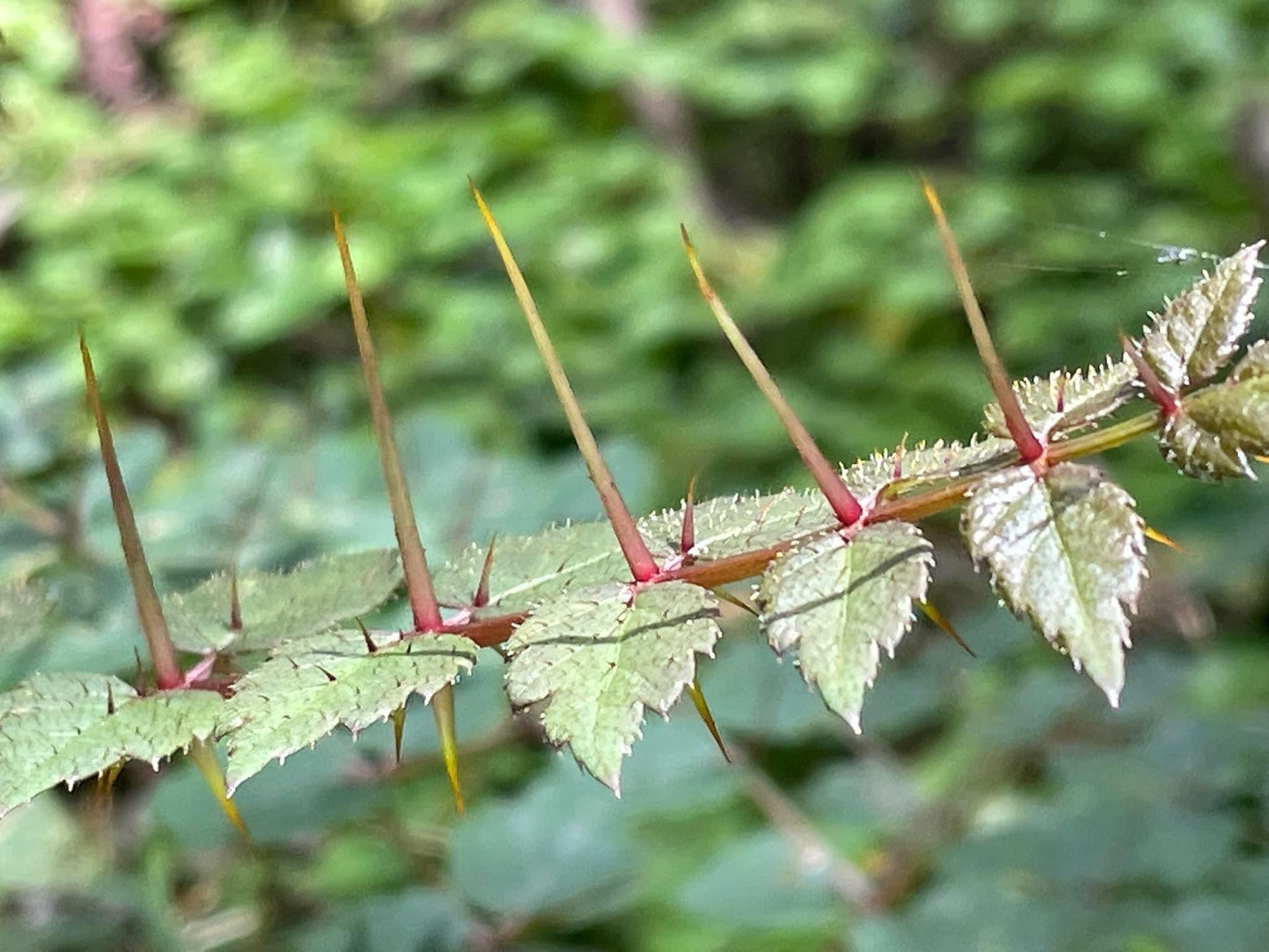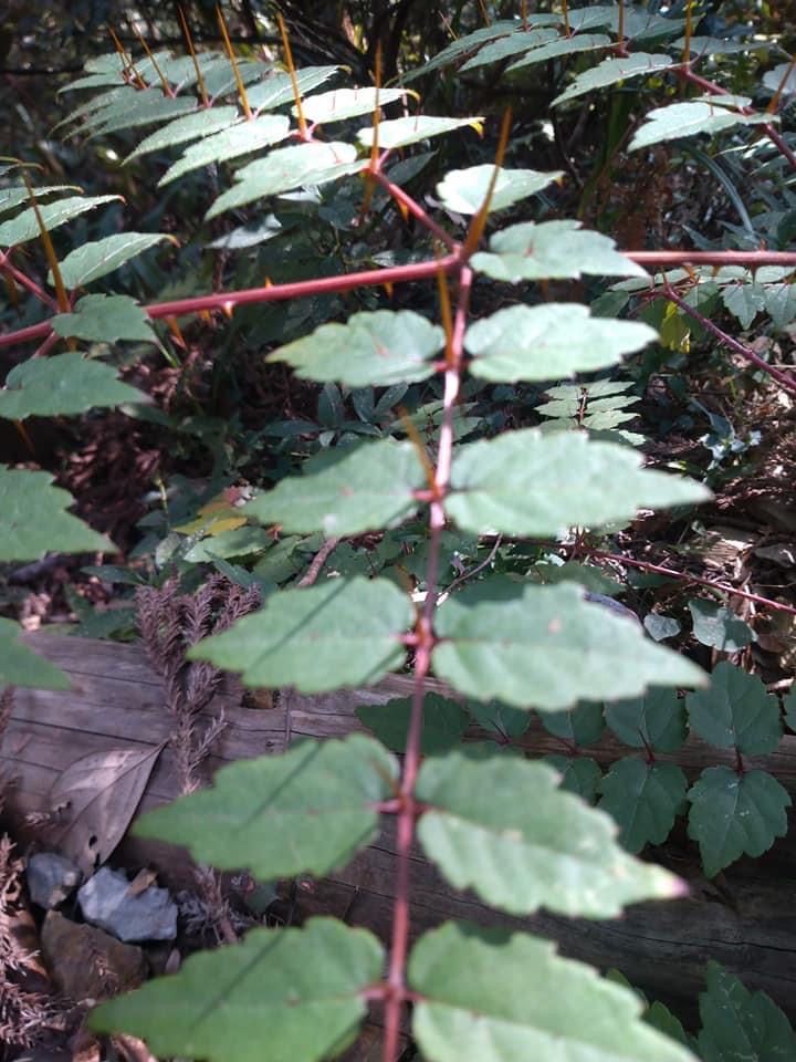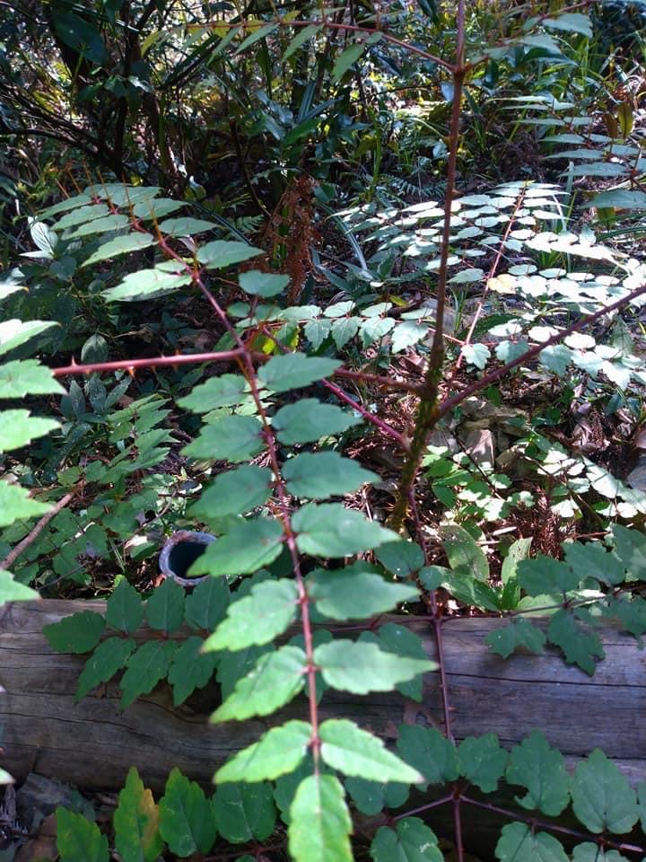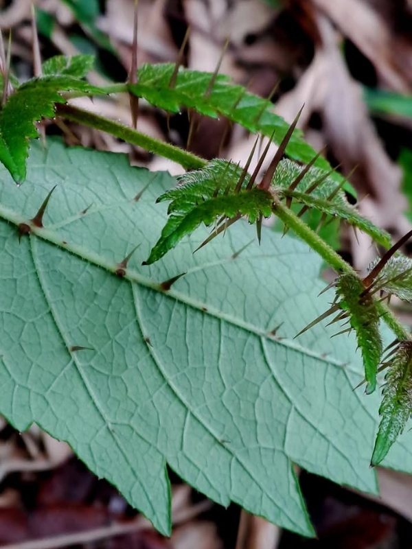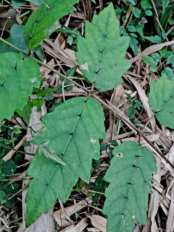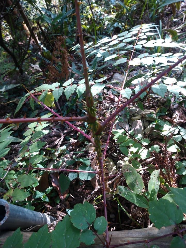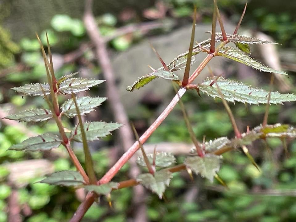 ![]() 上面照片:張儷蓁拍攝 (二回羽狀複葉,互生;小羽片對生,4~5對,基部具一對小葉;小葉對生,卵形至披針形,鋸齒緣,葉軸有棘刺) |