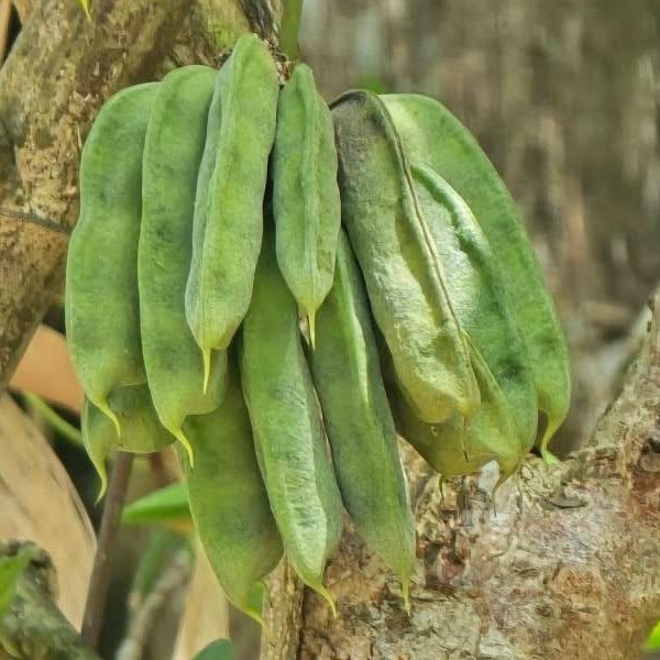 ![]() 上面照片:潘玉郎拍攝 (莢果短條狀,略扁,具喙,內含種子4~6顆) |