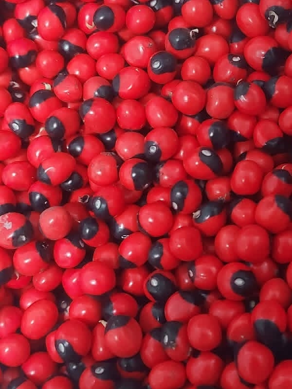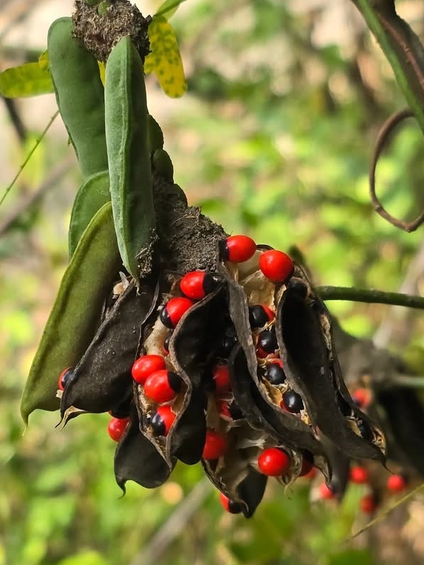 (原生種;原生於中國大陸、非洲和澳洲的三角區域;木質纏繞性藤本;偶數羽狀複葉,互生;小葉8~20對,長橢圓形,全緣;總狀花序,腋生或頂生;花冠蝶形,粉紅色至 淡紫紅色(或白色);莢果短條狀,略扁,具喙,內含種子4~6顆;種子堅硬,一端紅色,一端黑色,紅多於黑,具光澤,形色像瓢蟲;種子含毒蛋白,屬劇毒;莖葉則無毒)