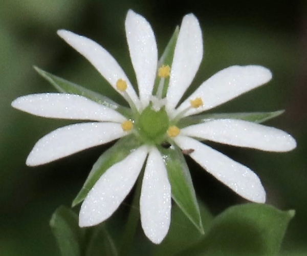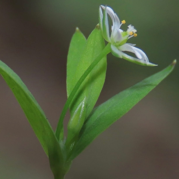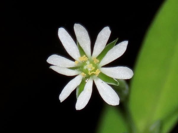 (原生種;原生於東北亞至東南亞,中國大陸至印度半島一帶;世界物種名錄標示 Stellaria alsine var. undulata = Stellaria undulata,皆為有效學名;台灣物種名錄將 Stellaria alsine 和 Stellaria alsine var. undulata 皆標名天蓬草,別名雀舌草;一年生至二年生草本;單葉對生,長橢圓形至倒披針形,無柄;花朵單生或呈聚繖花序,頂生,花梗細長;花瓣5枚,白色,每瓣深裂到底;雄蕊3~5枚,雌蕊柱頭3叉;花萼5枚,披針形,無毛;蒴果卵球形;種子多數,褐色)