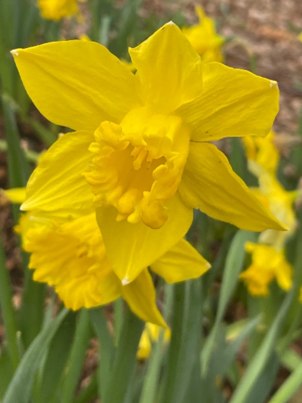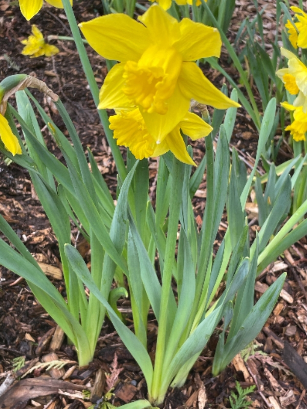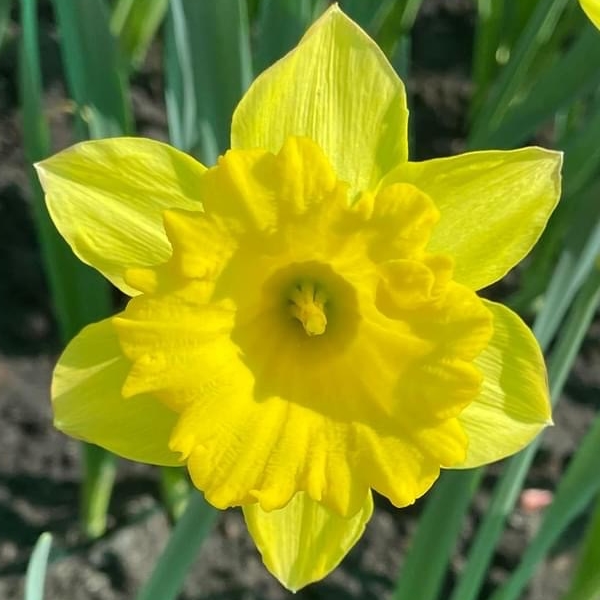 (栽培種;世界植物在線 POWO 標示學名 Narcissus pseudonarcissus;台灣物種名錄標名洋水仙,標示學名 Narcissus pseudo-narcissus;維基百科標名黃水仙;頂生1花;花被片6枚,黃色至白色,副花冠深黃色)