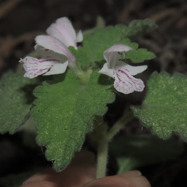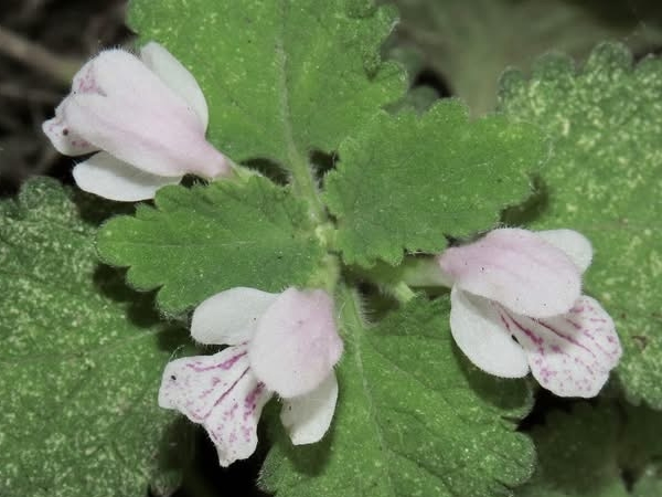 (原生種;原生於台灣、日本和中國大陸;台灣物種名錄標名塊莖小野芝麻,別名中國續斷,附有照片;多年生直立草本;全株被毛;具匍匐根;單葉對生,卵形,圓鋸齒緣,兩面被白色細毛;輪生聚繖花序,腋生;花冠粉紫色,2唇形,下唇3裂,中瓣具紫色條紋;雄蕊2強;每朵花可結4枚小堅果)