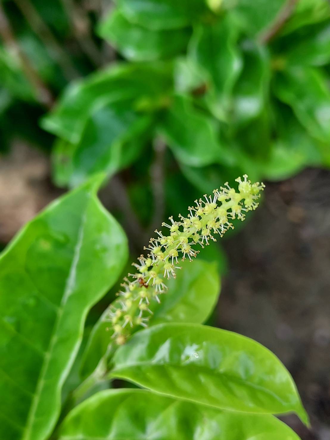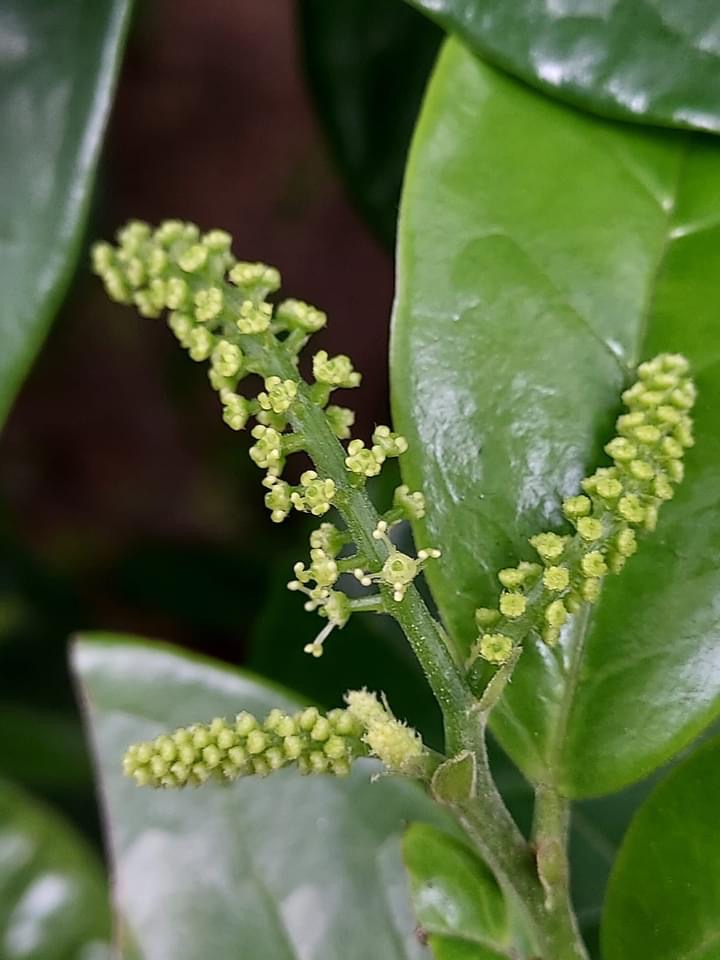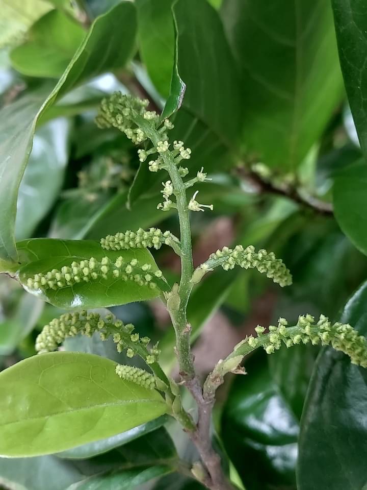 ![]() 上面照片:陳維琪拍攝 雄株和雌株長在一起,雄花序和雌花序合拍 |