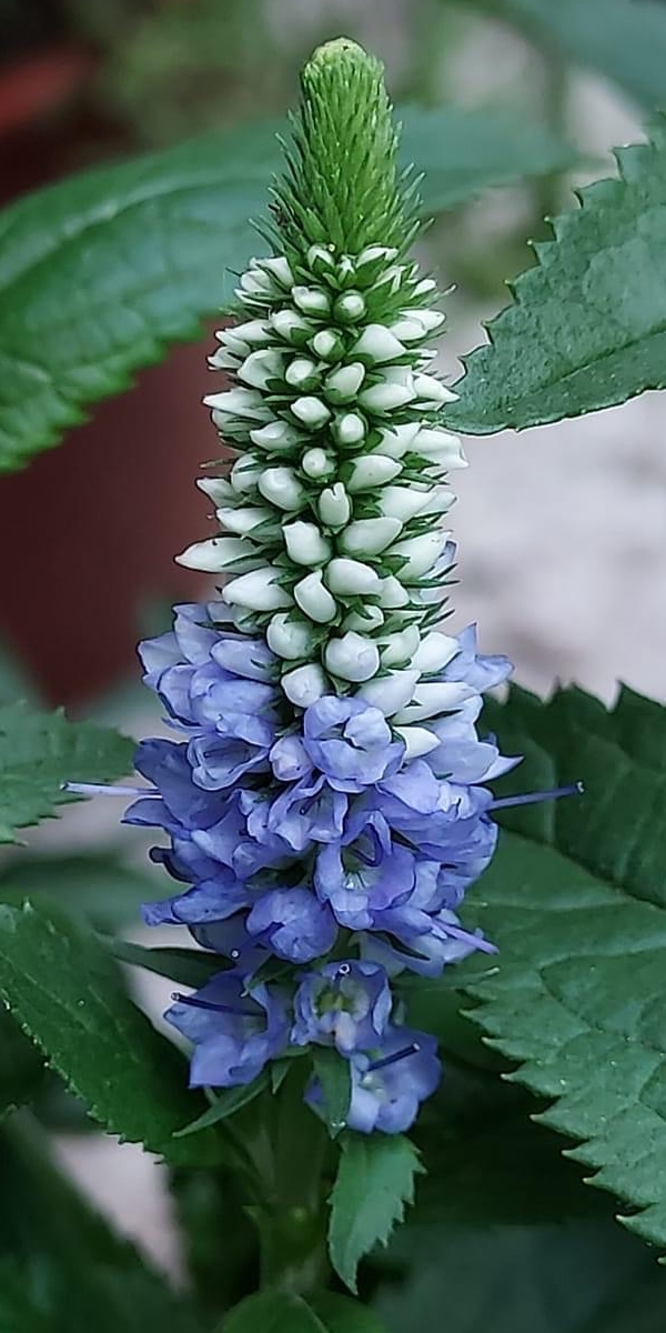 ![]() 上面照片:小花老師拍攝 (穗狀花序,頂生;花冠藍紫色;雄蕊2枚,特長,直伸;雌蕊柱單一,直線狀) |