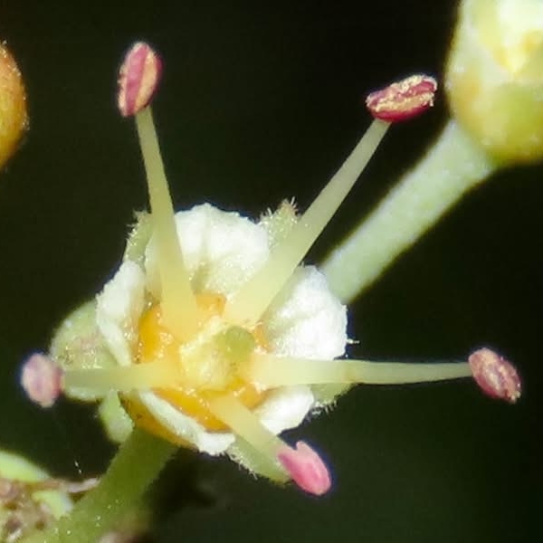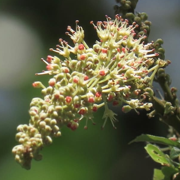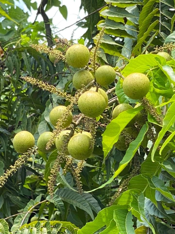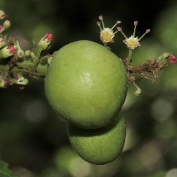 (原生種;在台灣原生於臺東及蘭嶼;常線中喬木至大喬木,樹高可達20公尺以上;樹幹基部板根發達;羽狀複葉,互生;小葉4~12對,近對生,長橢圓形至披針形,疏鈍鋸齒緣,葉基略歪斜,新葉常呈紅褐色;圓錐花序,頂生;花雜性,花瓣5枚,白色,短小不張;雄蕊特長,5枚,花藥紅色;核果球形,直徑約3∼4公分,初為淺綠,成熟橄欖綠;種子棕褐色,有假種皮包裹著,具甜味)