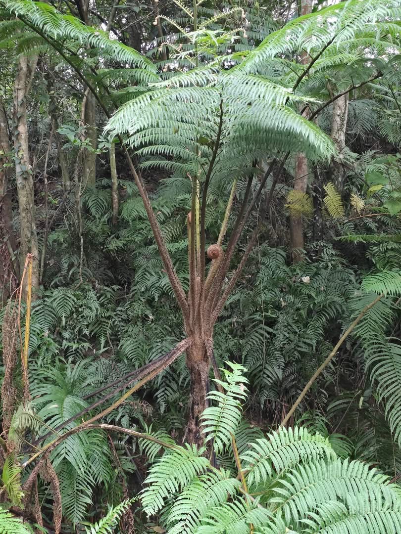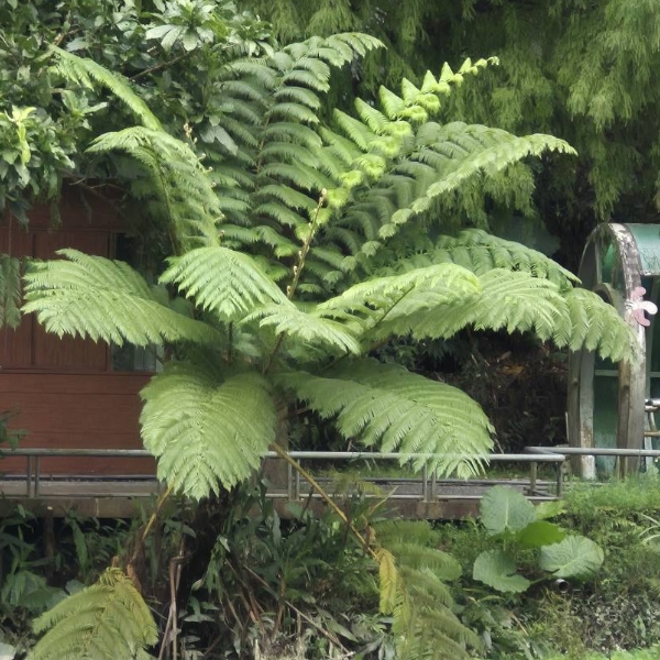 (原生種;原生於台灣、中國大陸至新幾內亞島一帶;巨型蕨類植物;單幹直立,高度可達6公尺以上;莖幹有托葉痕,如蛇鱗,故有蛇木之名;三回羽狀複葉,叢生於幹頂;莖幹去髓可作筆筒,故有筆筒樹之稱)