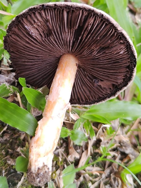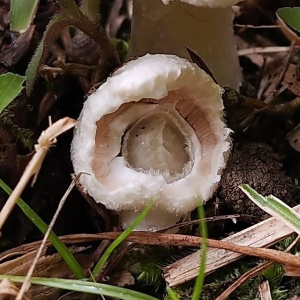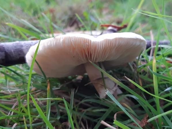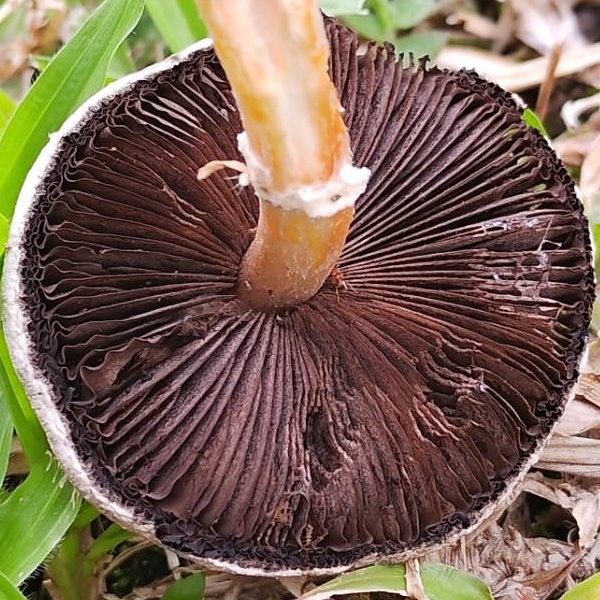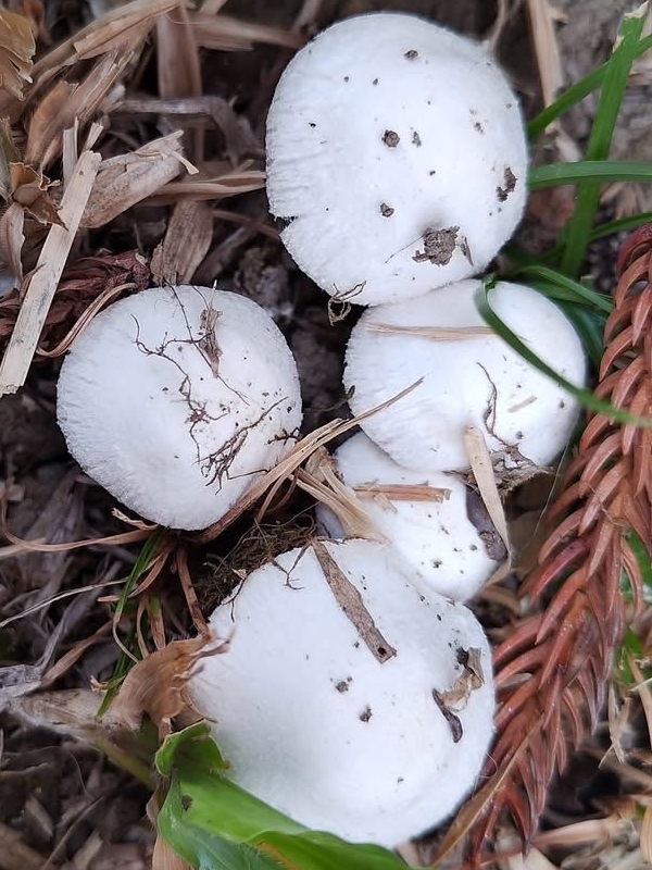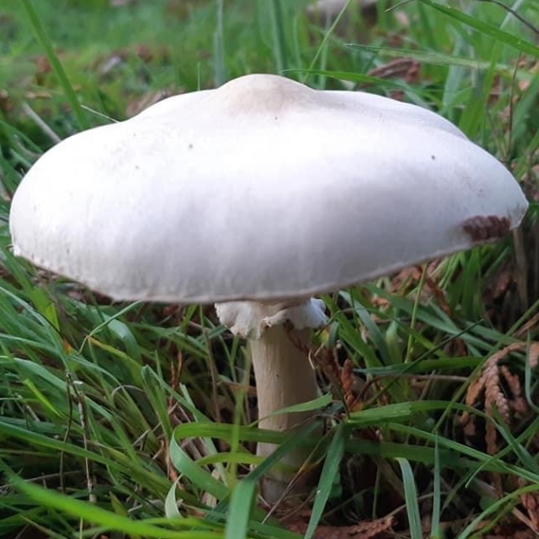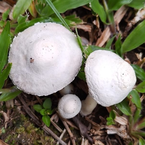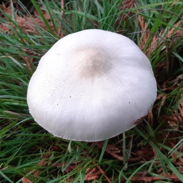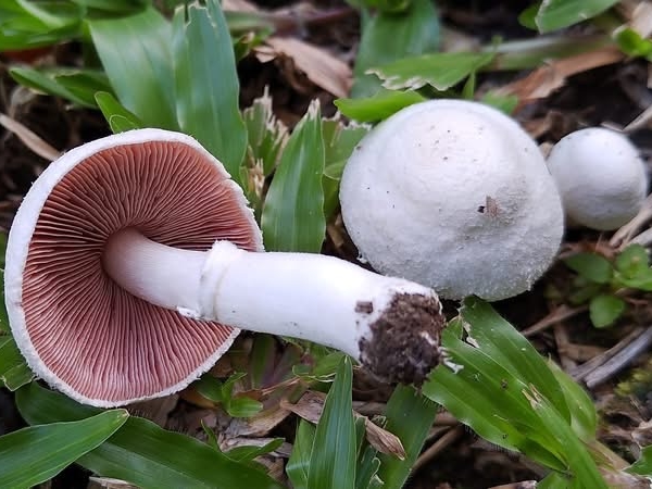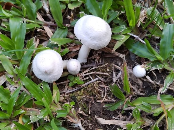 (原生種;全世界廣泛分佈;台灣物種名錄標名高溫洋菇,附有照片(相符);維基百科標名四孢蘑菇,別名野蘑菇;常見於草地群生,環狀;菌傘白色,傘徑約5~10公分;菌褶初為白色,後轉紅褐色,再轉暗褐色;有菌環;菌柄約2~6公分;有香氣,可食用(野菇相似物種繁多,不建議採食,以免誤食毒菇)