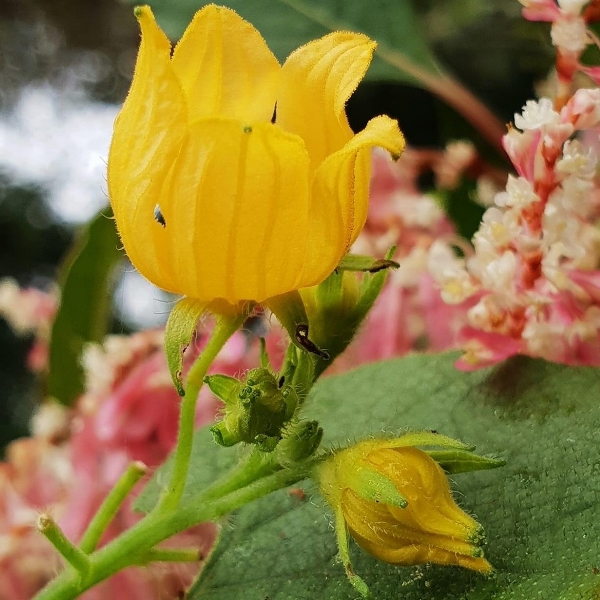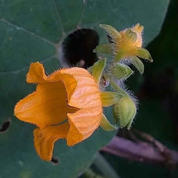 ![]() 上面照片:江亮亮拍攝 (,雄花總狀花序,雌花單生,花冠黃色至橙色) |