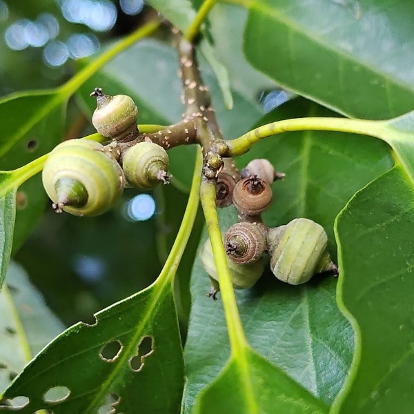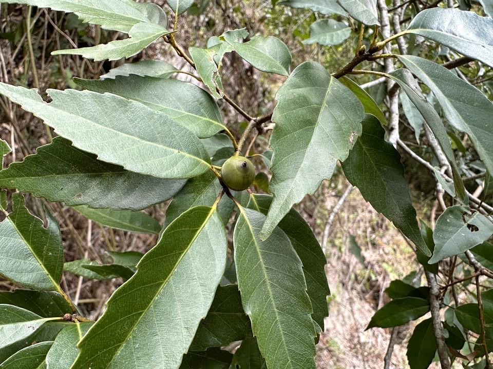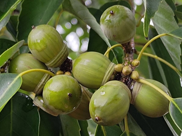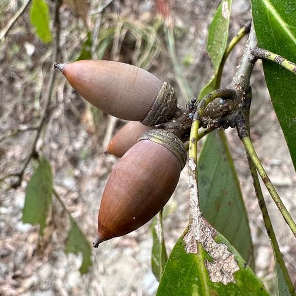 ![]() 上面照片:潘玉郎拍攝 (殼斗碗形,堅果卵形至橢圓形,表面光滑,頂端有一圓錐形突尖) |