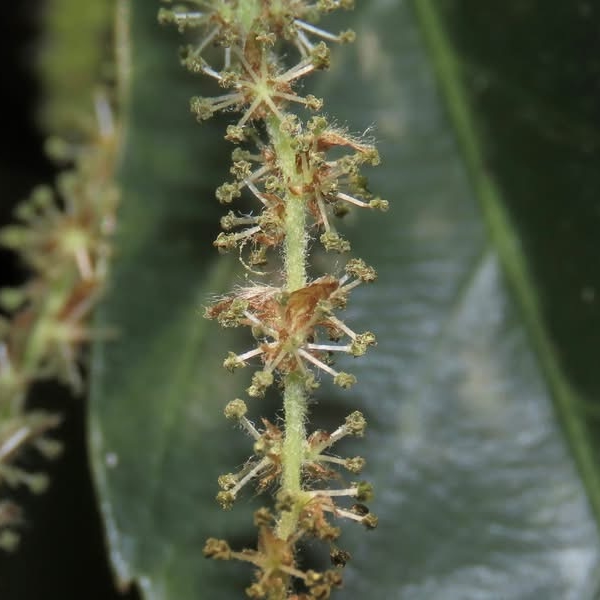 ![]() 上面照片:小花老師拍攝 (雌雄同株異序,雄花序呈葇荑花狀,腋生;雌花序生於枝端葉腋,花序較短,一梗有花2~4朵) |