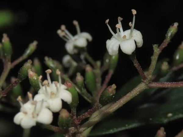 ![]() 上面照片:鄭演義拍攝 (聚繖花序,頂生;花瓣5枚,白色,雄蕊5枚) |