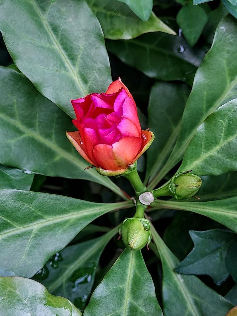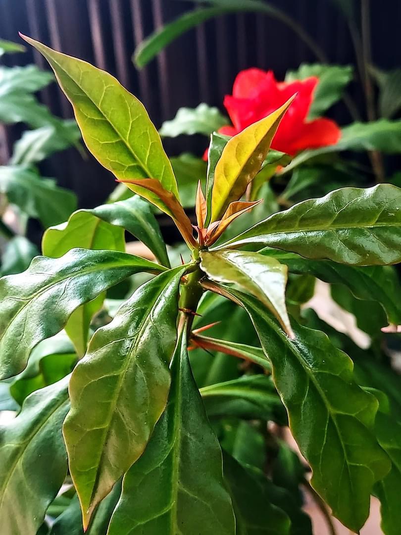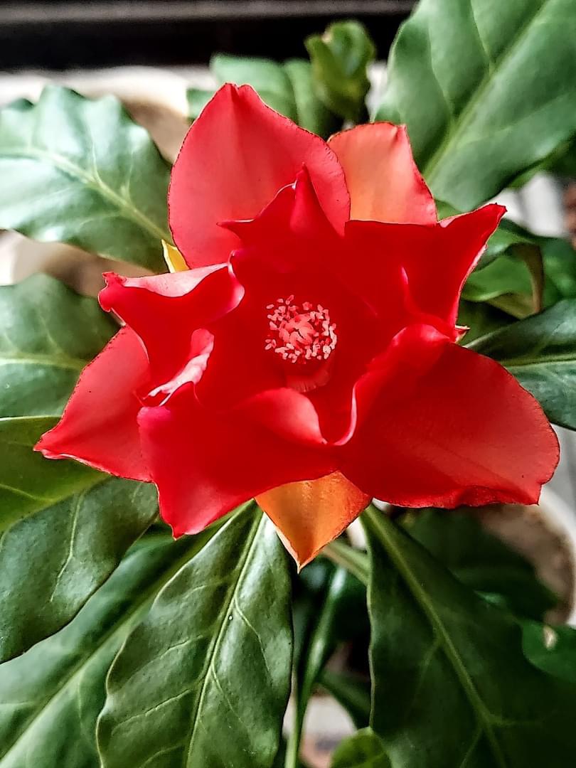 (栽培種;原生於美洲的哥倫比亞和巴拿馬;世界植物在線 POWO 標示學名 Leuenbergeria bleo,附有照片;台灣物種名錄查無此學名及中文名;維基百科標名玫瑰麒麟;舊學名 Pereskia bleo 被視為同物異名;灌木;單葉互生,長橢圓形,全緣,波浪狀;花朵單生,腋生或頂生,花瓣紅色;漿果碗形,黃色;內有5室,每室1枚黑色種子)