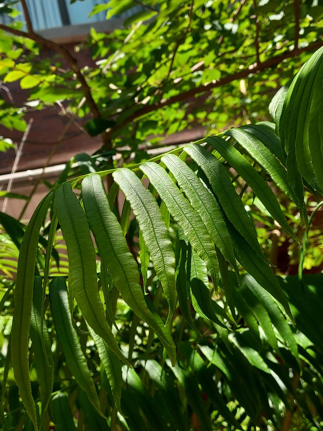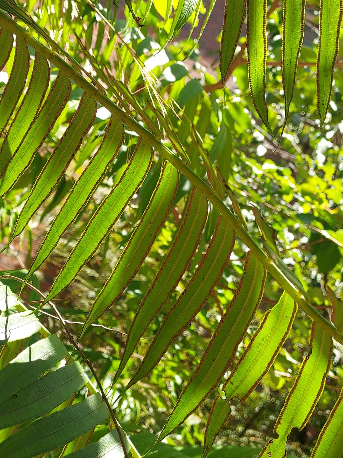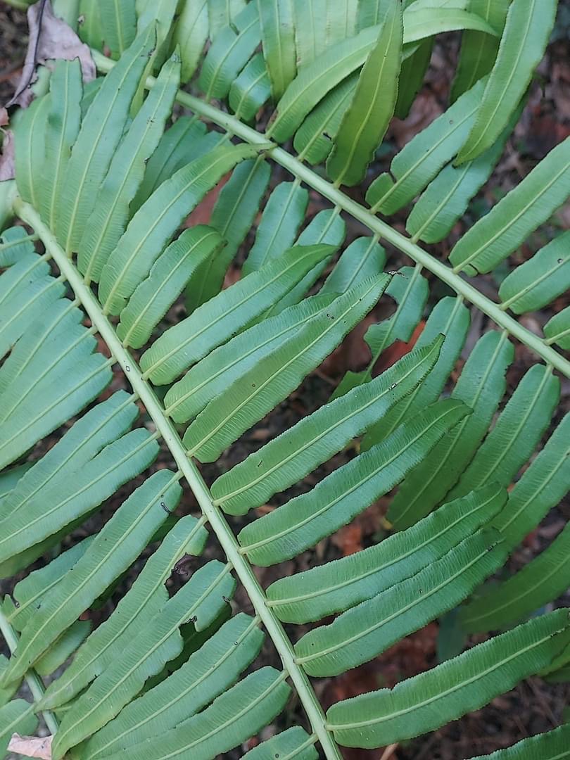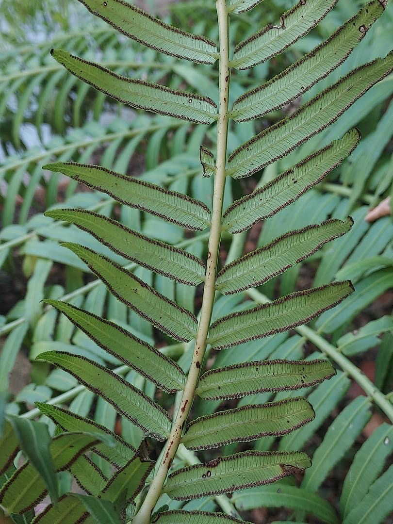 (原生種;宿存塊莖蓮座狀;二回羽狀複葉,長1~3公尺,叢生;小羽片披針形,具短柄;孢子囊長在葉緣側脈上)