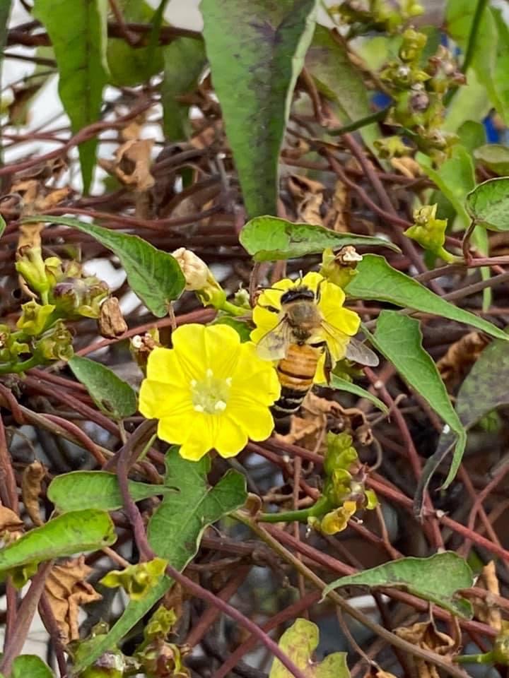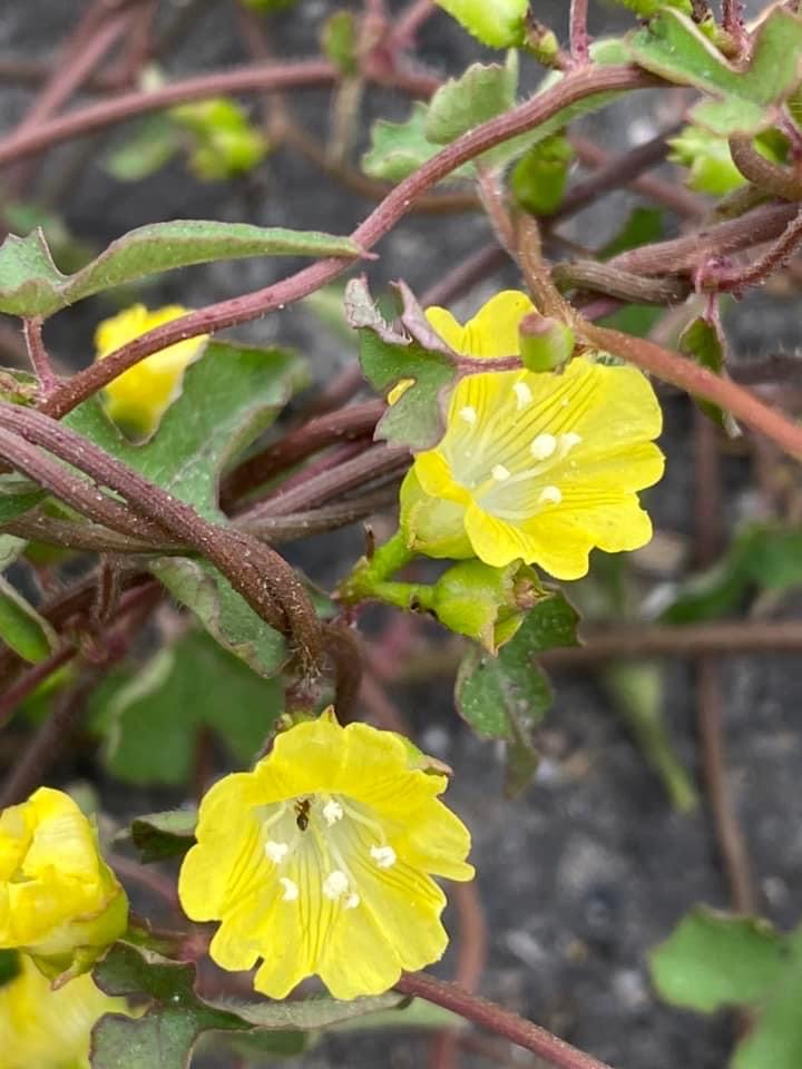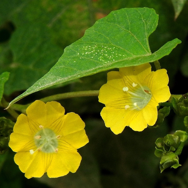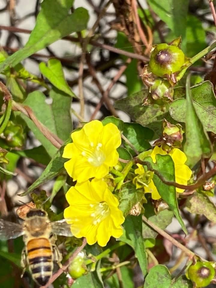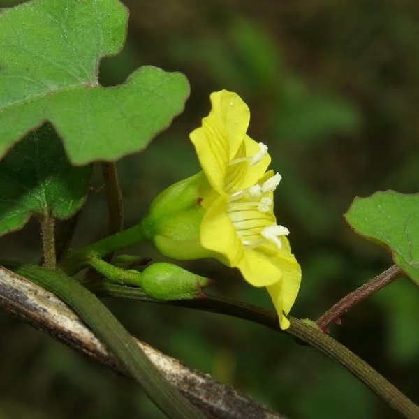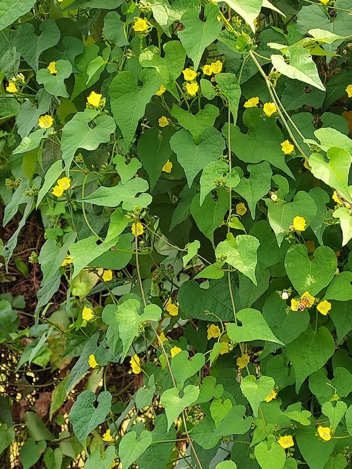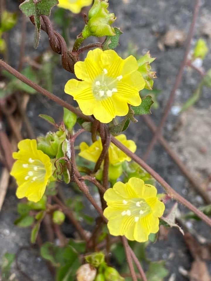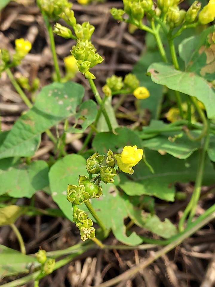 (原生種;原生於中國大陸、非洲和澳洲的三角區域;世界植物在線 POWO 附有照片(相符);台灣物種名錄標名卵葉菜欒藤 (與實際不符),別名卵葉姬旋花;維基百科標名籬欄網,魚黃草屬;香港柴娃娃植物網標名魚黃草;纏繞性藤本;單葉互生,卵心形至三裂狀掌形,長2~4公分;單花或聚繖花序,腋生;花冠黃色,花徑約1公分;雄蕊5枚,雌蕊柱頭2叉;蒴果卵球形,花萼宿存)
