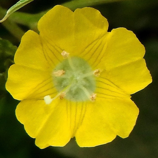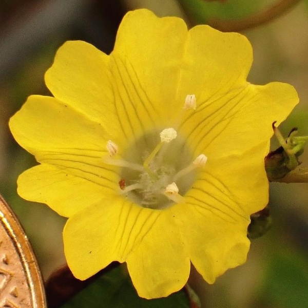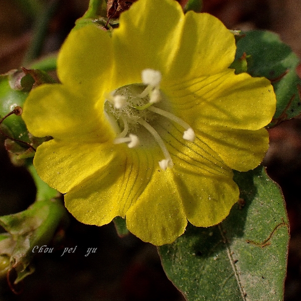 ![]() 上面照片:周佩玉拍攝 (花冠黃色,花徑約1公分;雄蕊5枚,雌蕊柱頭2叉) |