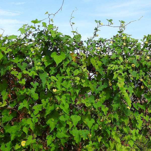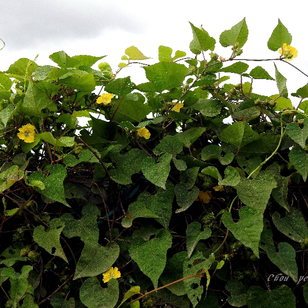 ![]() 上面照片:周佩玉拍攝 (纏繞性藤本;單葉互生,卵心形至三裂狀掌形) |