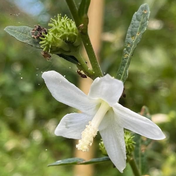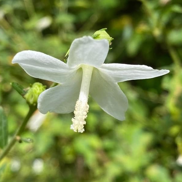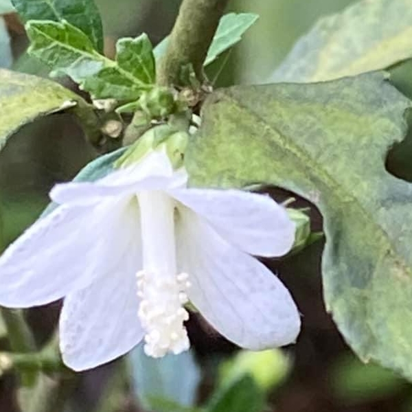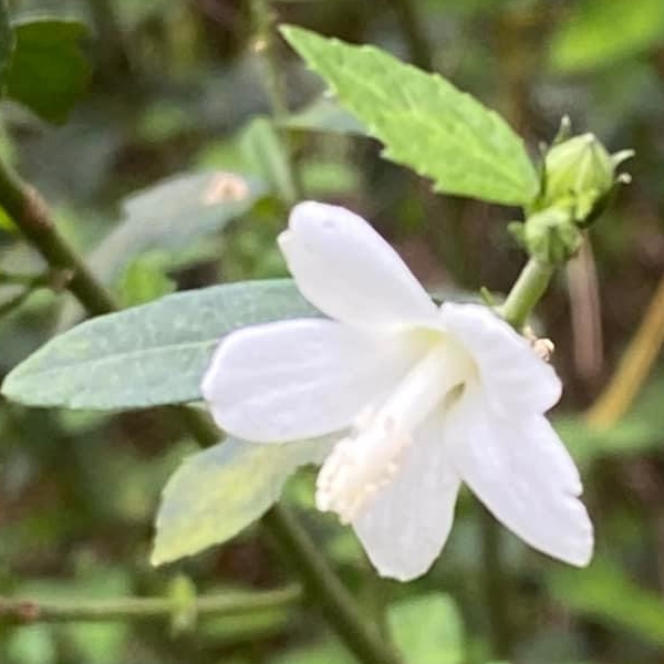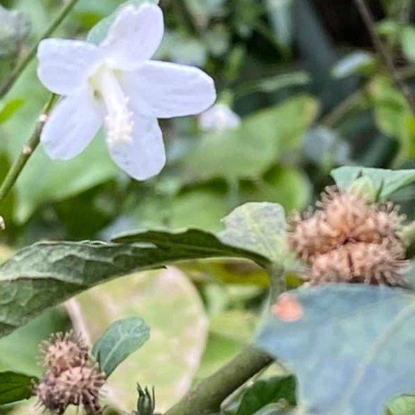 (原生種;原生於台灣和中國大陸;直立半灌木;單葉互生,卵形至掌形(3裂或5裂);花朵腋生,單生,花瓣5枚,白色或粉紅色;蕊柱合生,雄蕊多數;花萼2層,內層比外層大且長;瘦果5瓣狀,密被棘刺,棘刺末端有星狀的小倒鉤刺,可藉由動物沾粘傳播種子)
