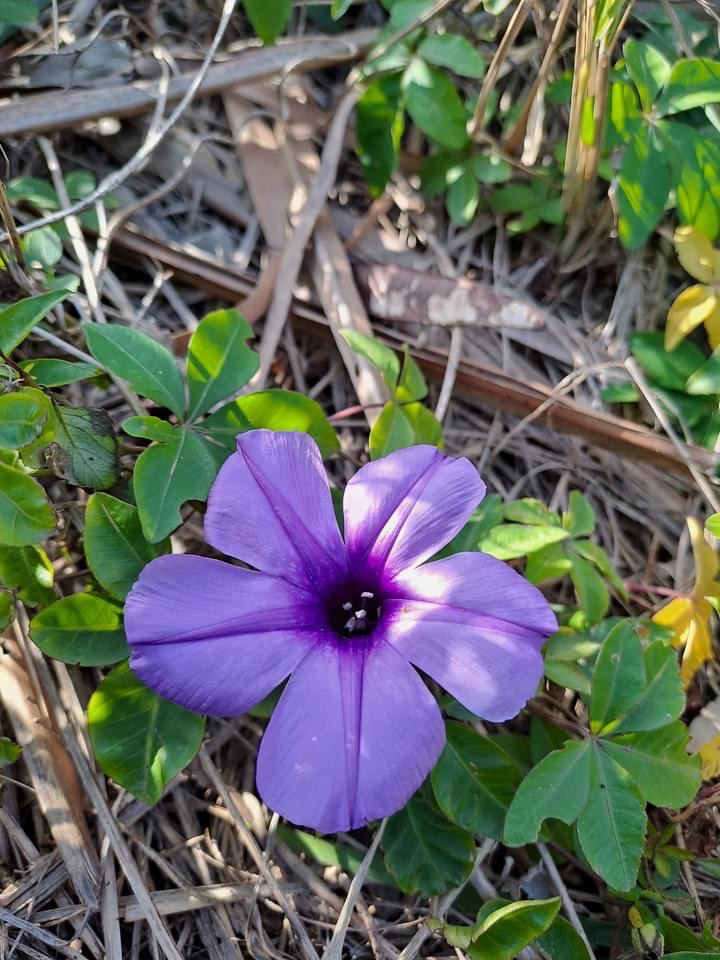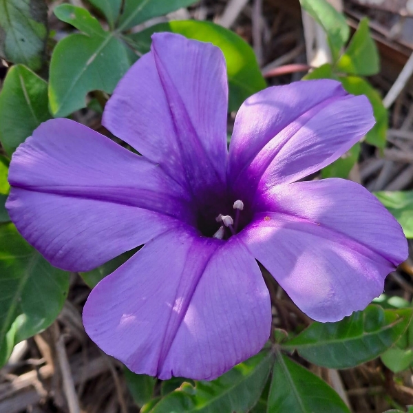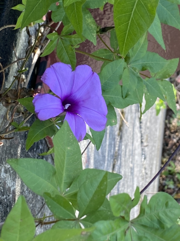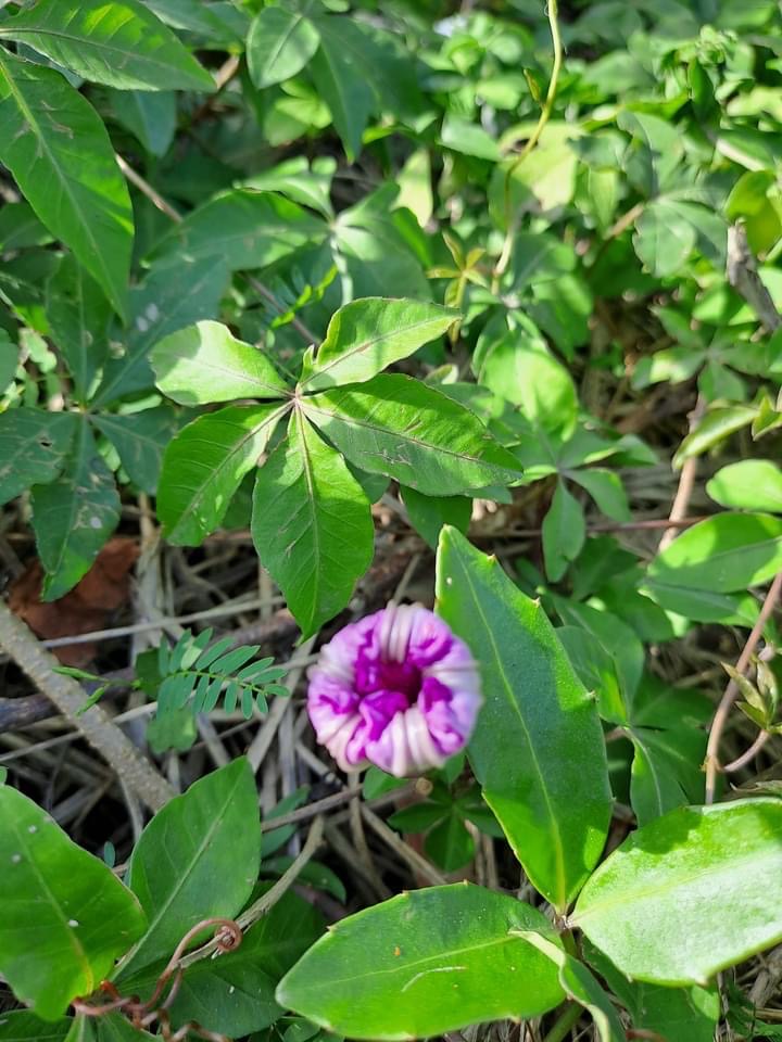 (原生種或歸化種;世界植物在線 POWO 標示原生於台灣、中國大陸至非洲一帶;台灣物種名錄標名番仔藤(意味為外來歸化植物),別名槭葉牽牛、五爪金龍、五爪龍、碗公花、白首烏、掌葉牽牛,附有照片,標示為歸花種;維基百科和香港柴娃娃植物網皆標名五爪金龍;台灣普遍稱作槭葉牽牛;多年生纏繞性草本;莖右旋;掌狀複葉,互生;小葉5枚(後小葉或分叉狀);花朵單生葉腋或3朵成聚繖花序;花冠漏斗、5淺裂至5深裂,淡紫色(偶有白色);蒴果近球形,4瓣裂,種子黑色)