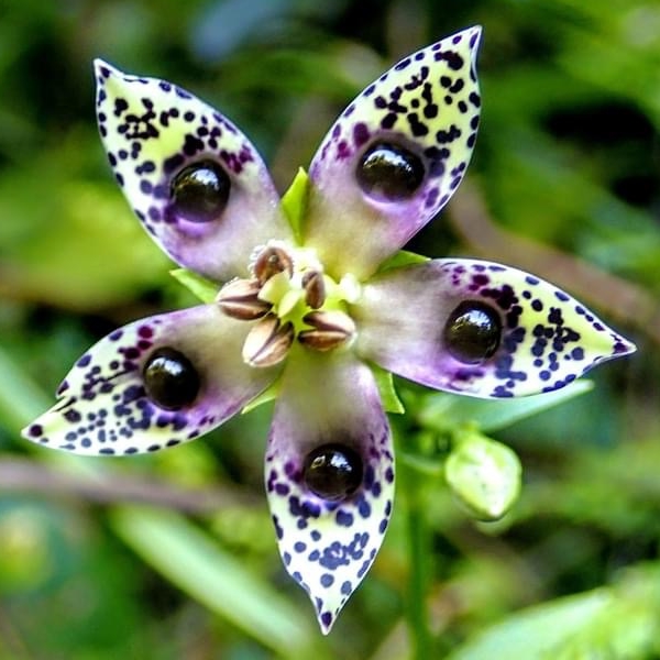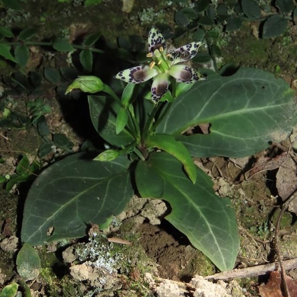 ![]() 上面照片:鄭演義拍攝 (基生葉於開花時宿存,倒卵形至橢圓形;莖生葉,單葉對生,卵形,無柄;花朵單生或總狀花序,腋生;花瓣5枚,淡黃綠色,散布紫斑,中間有一枚蜜腺(深紫色),可吸引昆蟲前來覓食) |