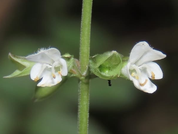 ![]() 上面照片:小花老師拍攝 (花莖頂生,花序輪繖狀;花冠筒狀,2唇狀(上唇2裂,下唇3裂),白色;雄蕊2強,雌蕊柱頭2叉) |