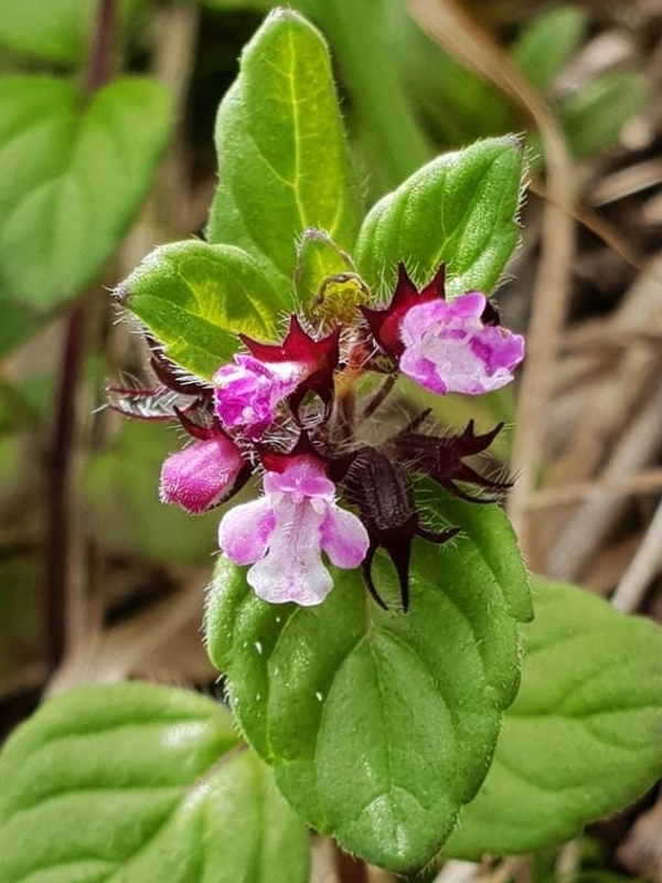 ============= 唇形科 疏花風輪菜 (Clinopodium laxiflorum) ============= (台灣特有種;多年生草本;單葉對生,卵形;花序半球形,花冠紫紅色,萼齒尖刺狀)