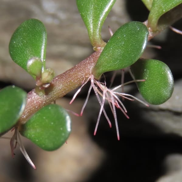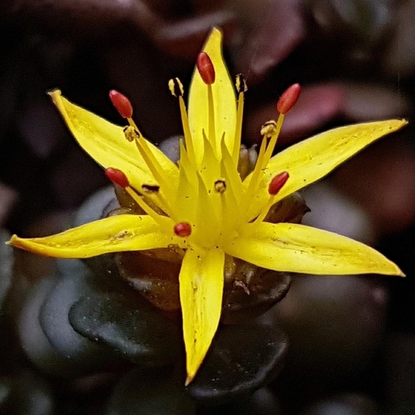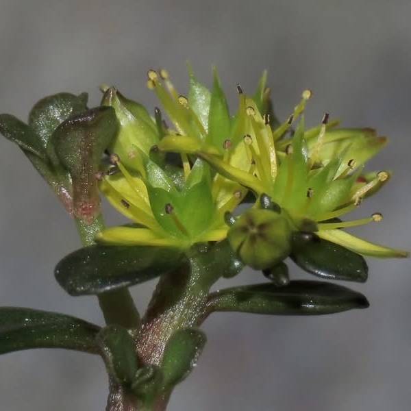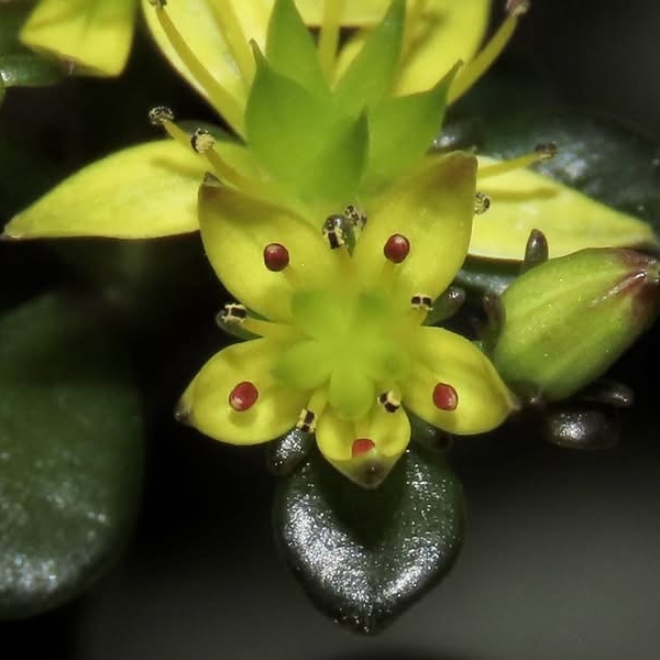 (台灣特有種;多年生草本;莖匍匐或斜生,分枝多,常呈紅色;單葉互生,倒卵形至倒長卵形,全緣,肉質;花朵單生葉腋;花瓣5枚,黃色;雄蕊10枚)