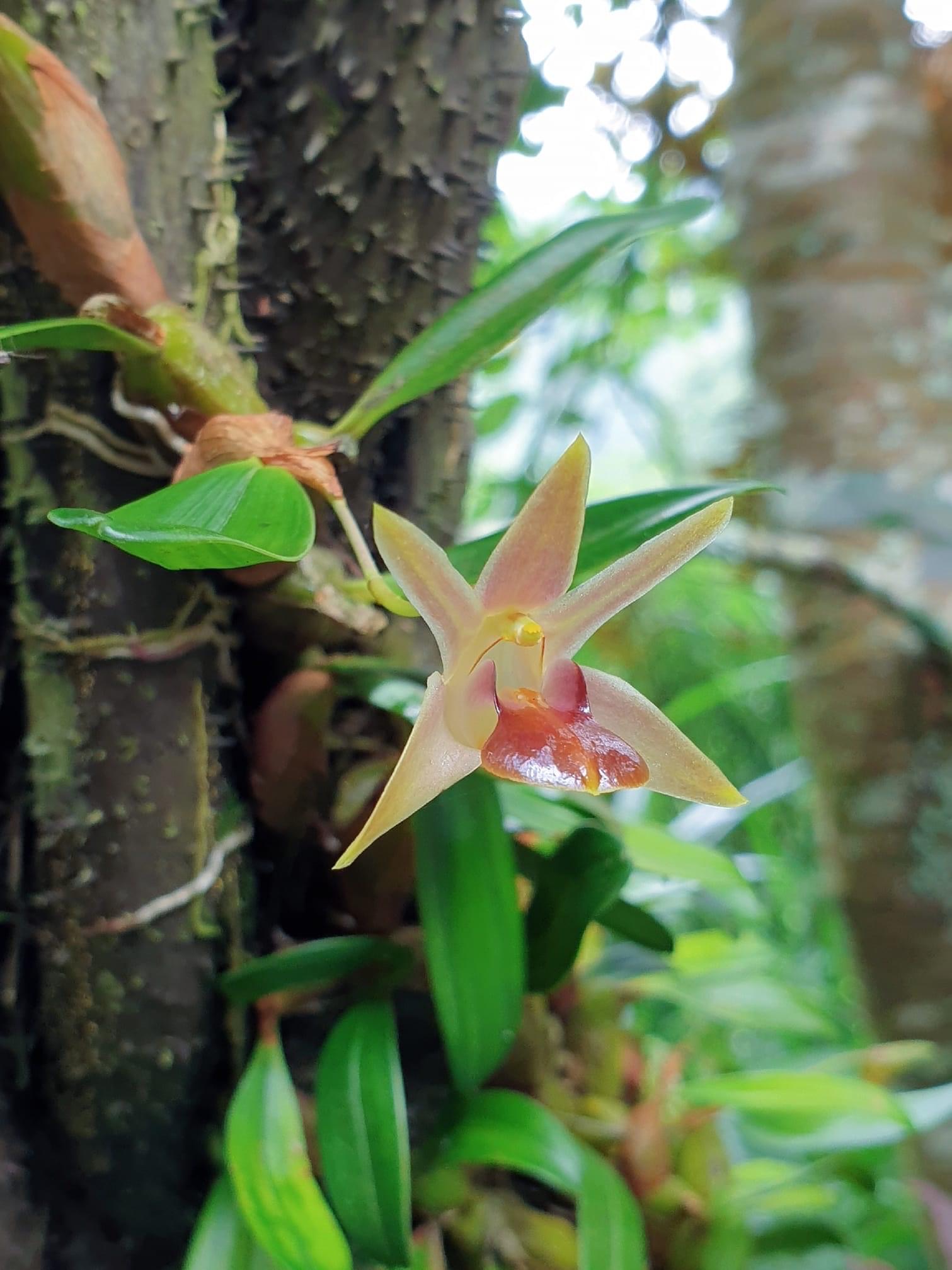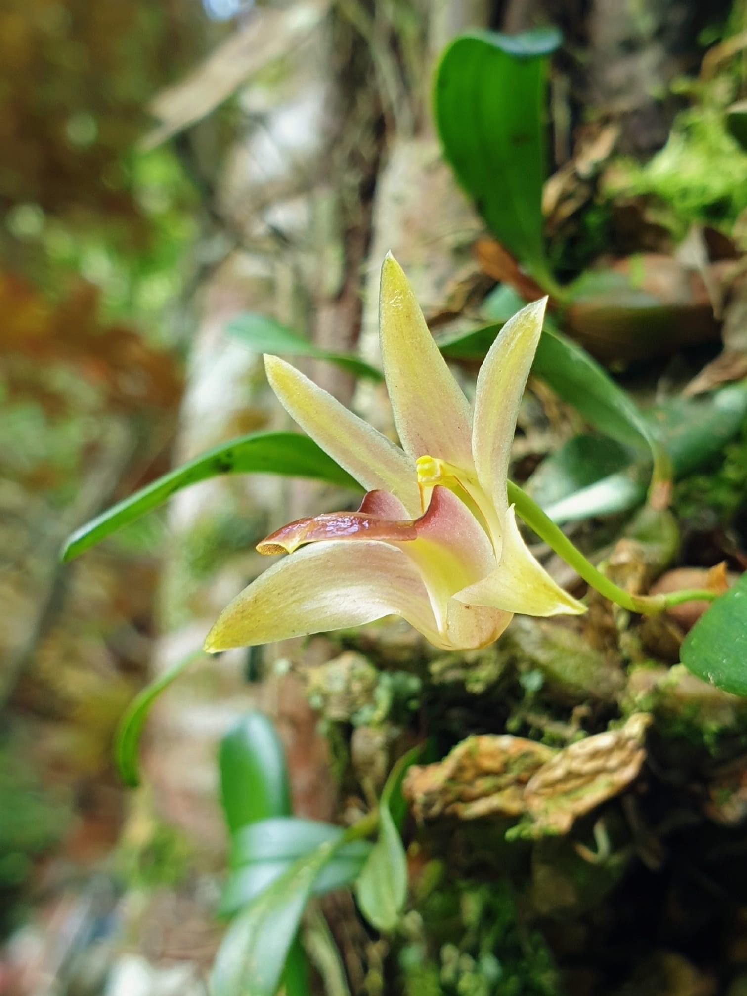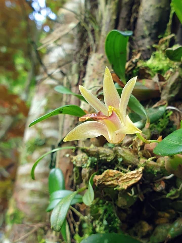 (原生種;台灣物種名錄標名臘石斛,別名蠟著頦蘭;頦讀孩,意為下巴;著讀卓,意為附著;臘石斛和蠟著頦蘭,台灣物種名錄使用不同的字(臘和蠟))