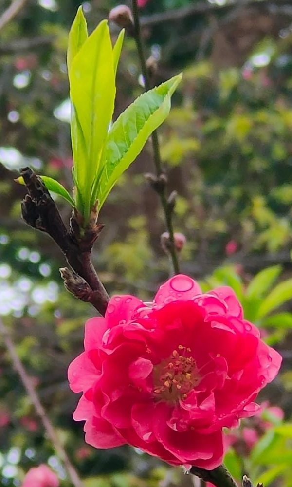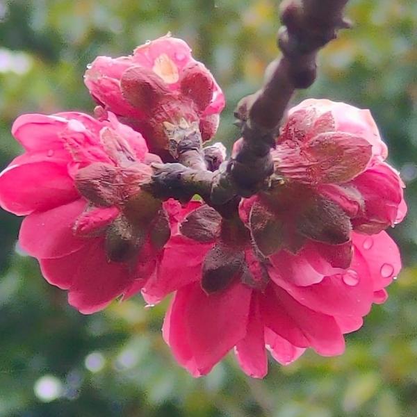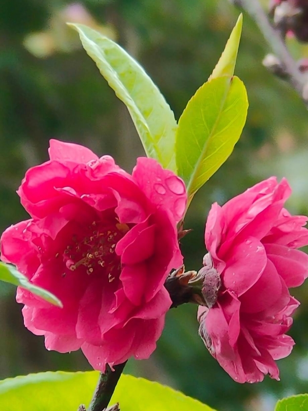 ============= 薔薇科 紅 碧桃 (Prunus persica 'Duplex'、Amygdalus persica 'Duplex') ============= (栽培種;桃的重瓣變種,花梗短,花瓣有白、紅、粉紅等色;紅碧桃花萼暗紅色,白碧桃花萼綠色)