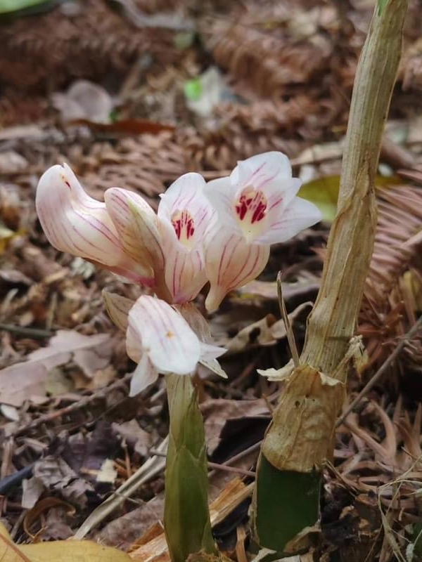 ![]() 上面照片:鄭演義拍攝 (地生蘭;每個假球莖上單生一葉;總狀花序,著花3~5朵) |