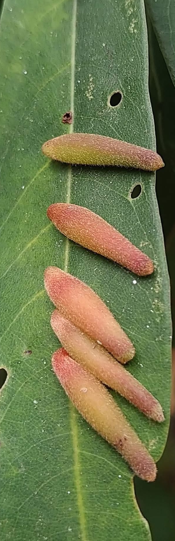 ![]() 上面照片:林美燕拍攝 (發現香楠的紡錘狀蟲癭) |