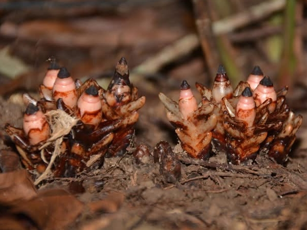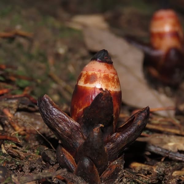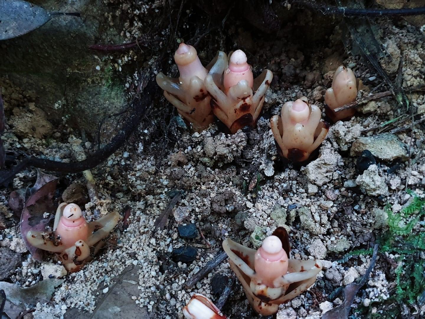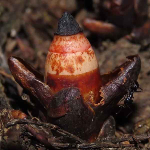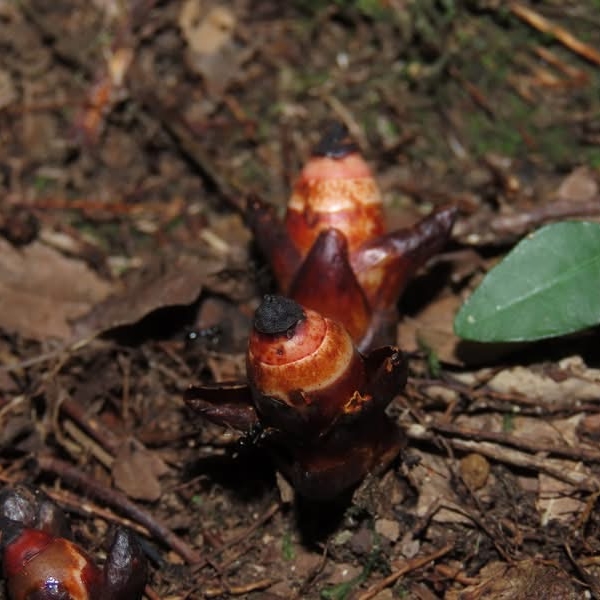 (台灣特有種;台灣紅皮書標示瀕危;南投蓮華池和桃園東眼山有分布;一年生肉質草本;寄生植物;寄生於特定殼斗科(鋸葉長尾栲或其他殼斗科)植物的根上);株高3~5公分;植物體呈倒圓錐形;植株4棱狀,單葉對生,5~6對,卵形至披針形,鱗片狀;單花,頂生;先雄蕊