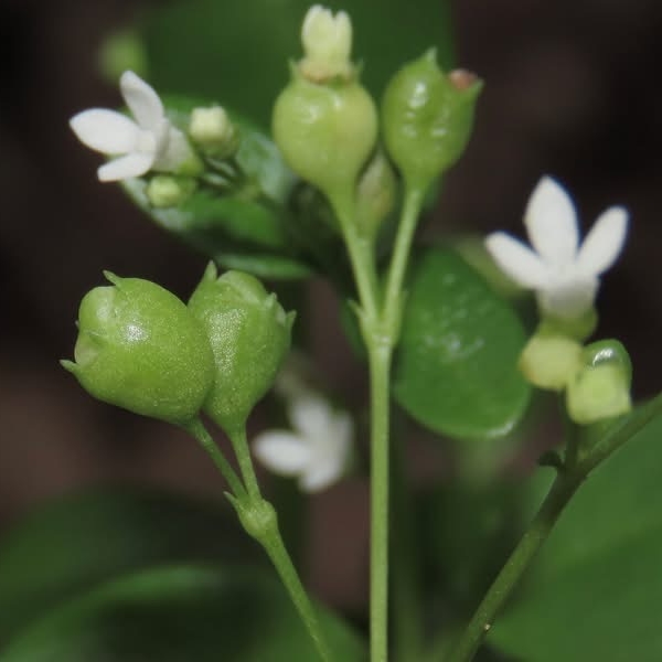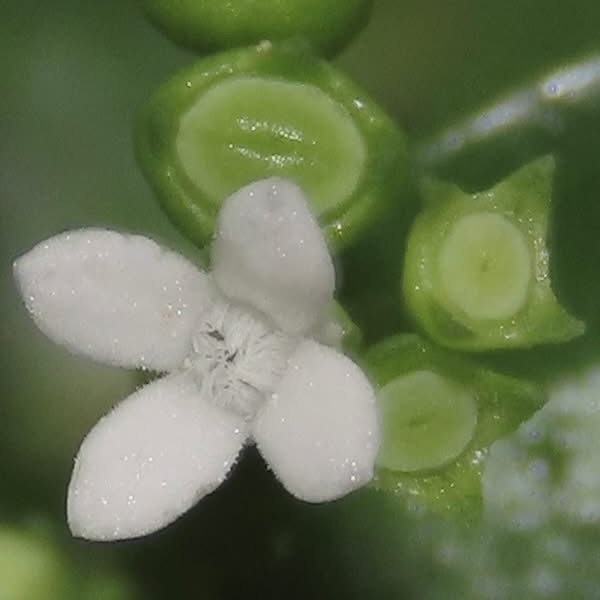 ![]() 上面照片:小花老師拍攝 (花瓣4枚,白色,喉口被毛;蒴果杯狀,花萼4枚宿存,齒狀) |
