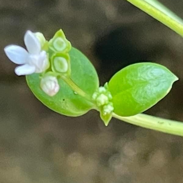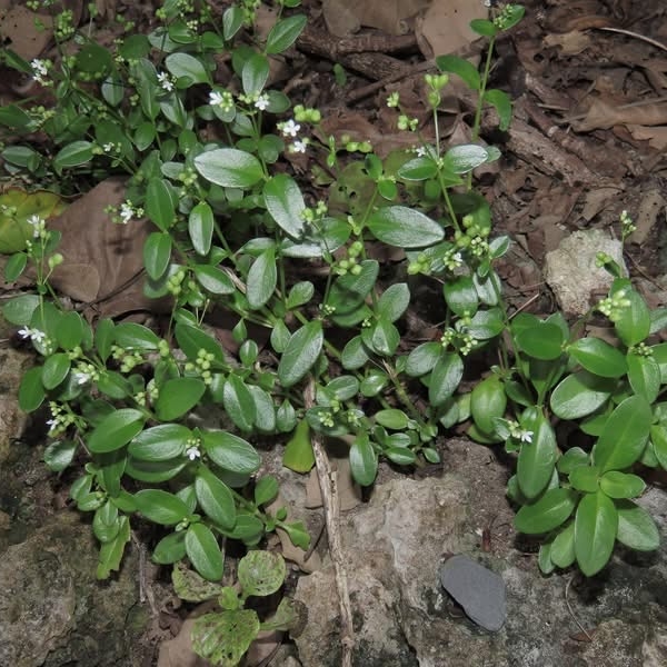 (原生種;世界植物線上 WFO 標示 Leptopetalum strigulosum var. parvifolium = Leptopetalum coreanum var. coreanum,標示原生於台灣、日本至中國大陸 (以 WFO 的學名為準);世界植物在線 POWO 標示學名 Leptopetalum strigulosum,標示原生於菲律賓、新幾內亞島和印度(未包含台灣),附有標本照片;維基百科英文版標示學名 Leptopetalum strigulosum 附有照片;台灣物種名錄將 Leptopetalum strigulosum 標名海岸擬耳草,別名單花耳草、肉葉耳草、脈耳草,標示原生種(未附照片),將 Leptopetalum coreanum 標名脈耳草,標示原生種,附有照片;多年生草本;生於海邊礁岩上;單葉對生,肉質,橢圓形至長橢圓形;聚繖花序,頂生,約10朵;花瓣4枚,白色,喉口被毛;蒴果杯狀,花萼4枚宿存,齒狀)