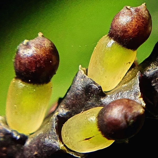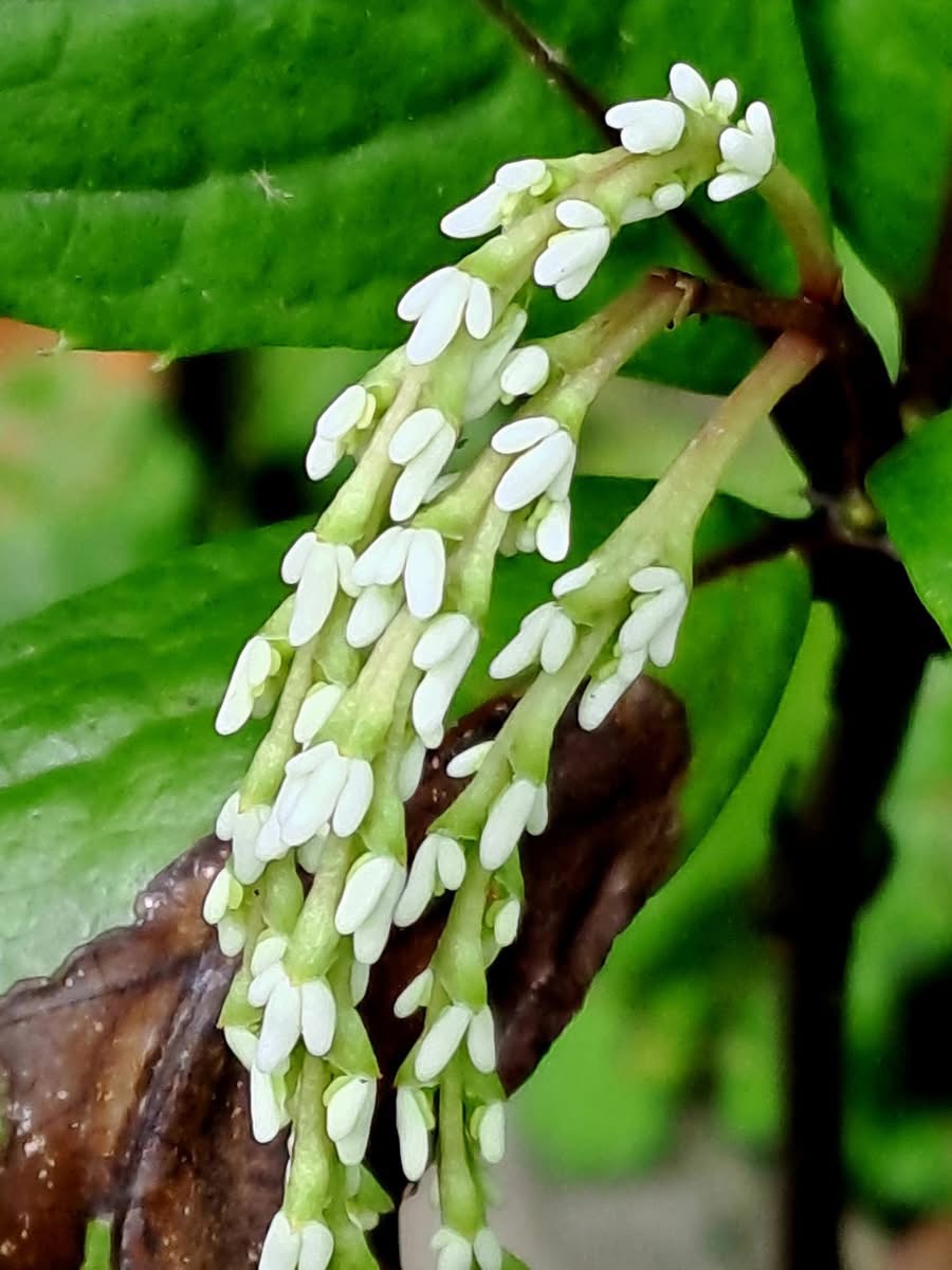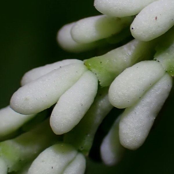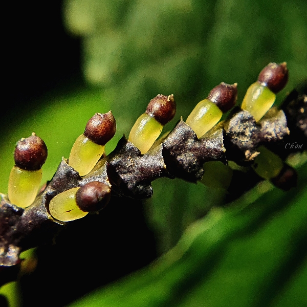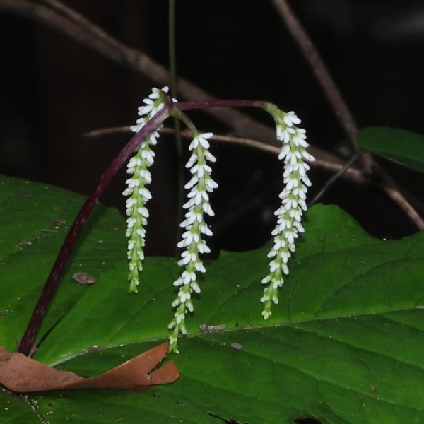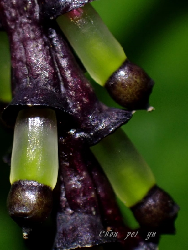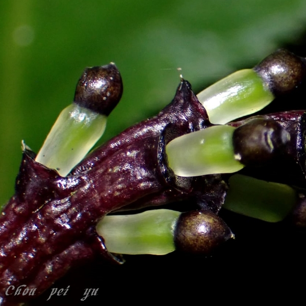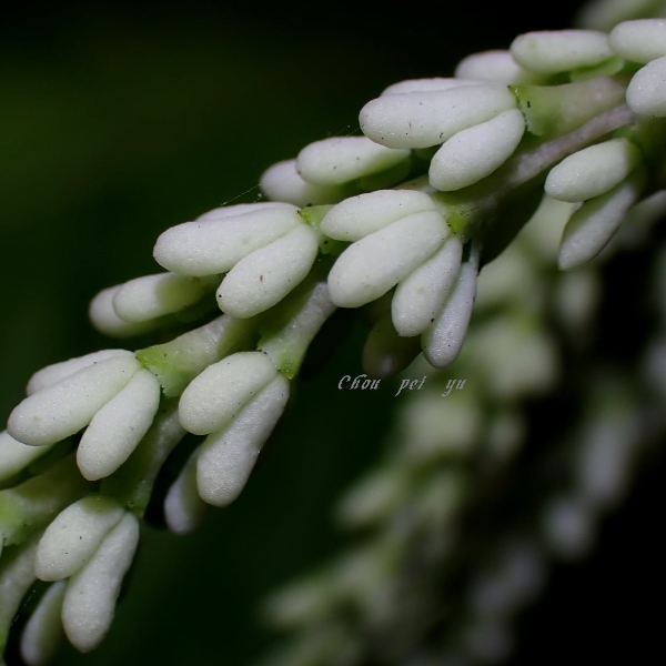 ![]() 上面照片:周佩玉拍攝 (無花瓣和花萼,每朵花有雄蕊3枚,白色,中間較大,前端圓形) |