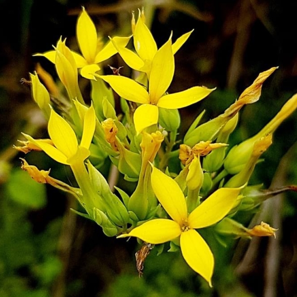 (原生種;原生於台灣、中國大陸至印度和印尼一帶;世界植物在線 POWO 標示 Kalanchoe garambiensis = Kalanchoe hybrida = Kalanchoe spathulata = Kalanchoe integra,皆為有效學名;台灣物種名錄將 Kalanchoe integra 標名倒吊蓮,標示原生種,將 Kalanchoe garambiensis 標名鵝鑾鼻燈蘢草,標示台灣特有種;維基百科標名匙葉伽藍菜,別名倒吊蓮,標示學名 Kalanchoe spathulata;多年生肉質草本;單葉對生,肉質,著生於莖下部者具柄,漸上漸小幾無柄,匙狀至長橢圓形;聚繖狀繖房花序,花冠高腳杯狀,花瓣4枚,黃色;蓇葖果,長橢圓形)
