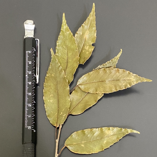 ============= 殼斗科 (山毛櫸科) 白背櫟 (Quercus salicina) ============= (原生種;世界植物在線 POWO 標示原生於日本和高麗半島(不含台灣);喬木;單葉互生,長卵形至狹長橢圓形,銳鋸齒緣至全緣,葉背灰白色;單性花,雌雄同株;殼斗杯狀,密被灰褐色毛)