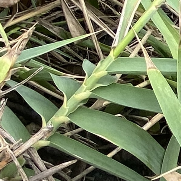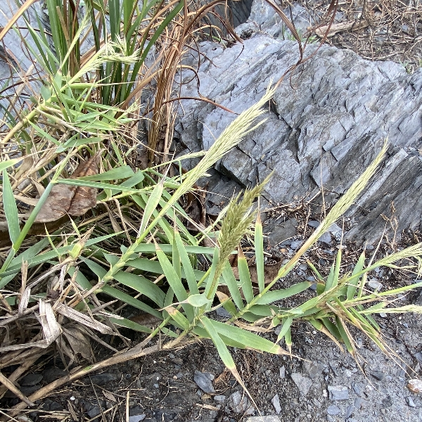 (台灣特有種;世界植物在線 POWO 承認之學名,標示 Arundo formosana subsp. robusta = Arundo formosana var. robusta,皆為有效學名;台灣物種名錄2025年查無此學名及中文名;多年生草本;海岸類型,生於岩上,或岩上土坡,植株與花序相對緊縮很多)